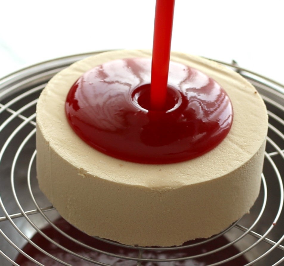 フランボワーズのグラサージュで、ほんのりキャラメル風味のショコラムースと、バニラのような甘い香りのスパイス「トンカ豆」の風味をとじ込めたまろやかな口どけのブリュレ、きりっとした酸味のフランボワーズのジュレを包みました。
