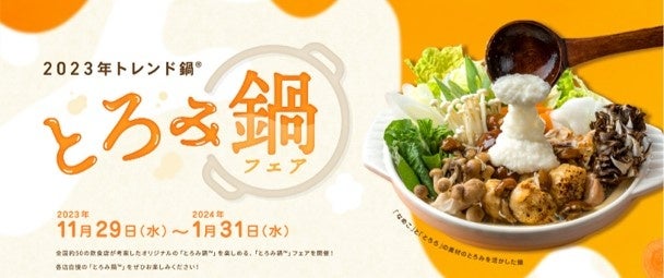 “とろみ鍋™”を多くの人に楽しんでいただくため、全国の飲食店にご賛同いただき、オリジナルの”とろみ鍋™“を提供していただく、「とろみ鍋™メニューフェア」を11月29日(水)より開催します。