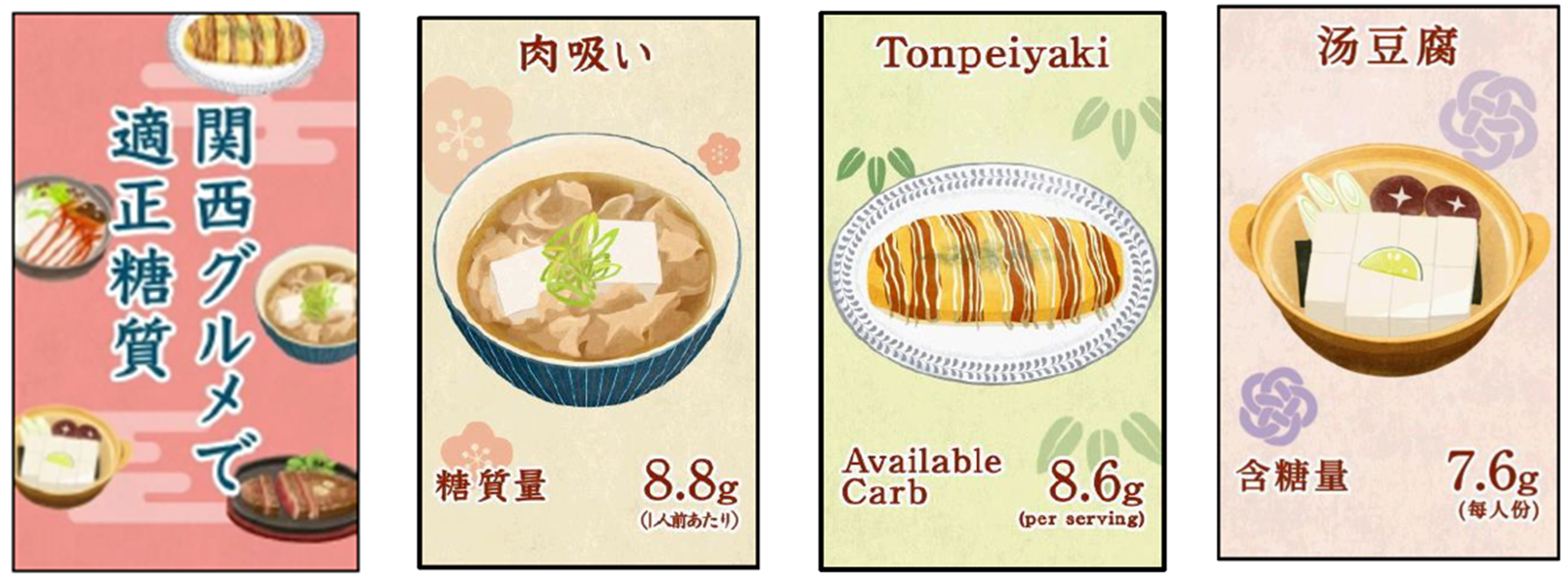 ※3 道頓堀グリコサインにて紹介する関西グルメの糖質量は、Glicoのオリジナルレシピから算出しています。詳細な情報は、参考資料②をご確認ください。