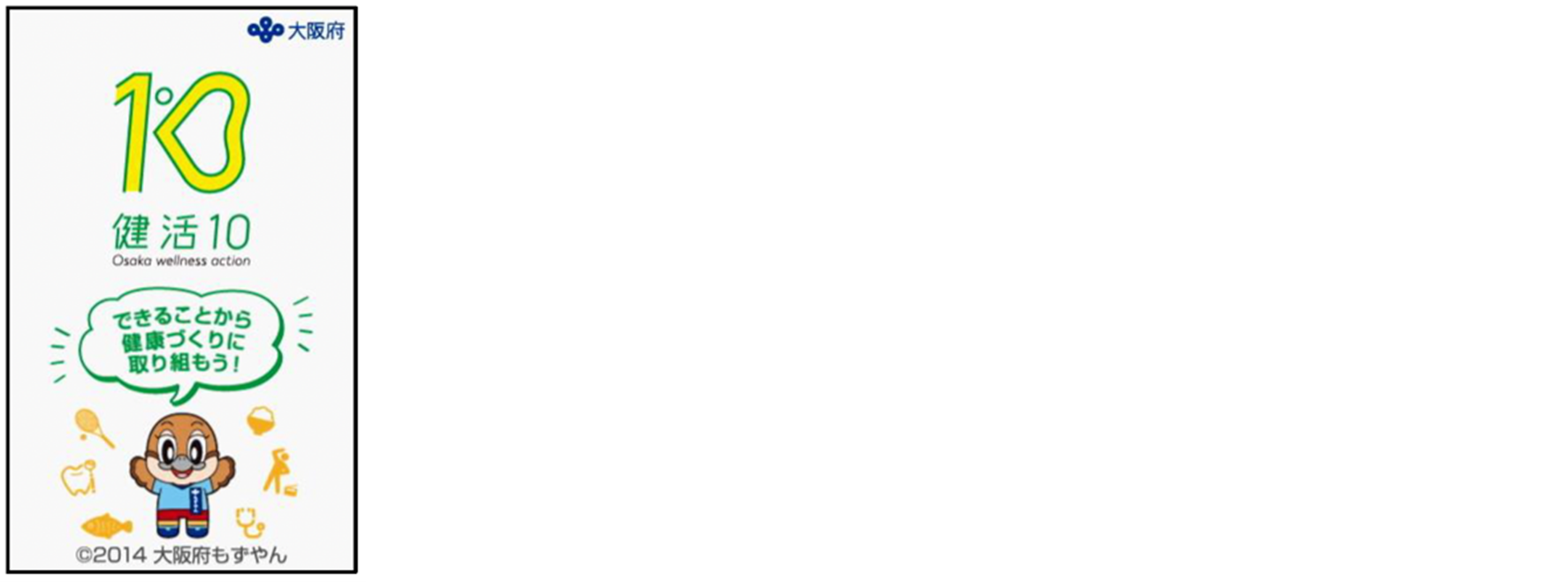 ※4大阪府では、生活習慣の改善や生活習慣病の予防などに向け、府民に取り組んでいただきたい「10の健康づくり活動」を「健活10」のキャッチコピーを掲げ、健康づくりの推進に取り組んでいます。