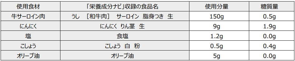神戸が誇るブランド牛「神戸牛」。牛肉は150gで糖質量0.5gのみ。塩・こしょうベースでの味付けとすることで糖質を抑えています。