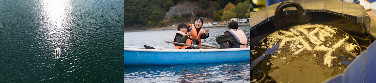 会場に隣接する西湖では、わかさぎ釣り体験と、湖上でのおやつタイムを開催。秋の湖ならではのわかさぎ釣りには朝から多くの参加者が集まり、釣れたわかさぎは広場で調理をして味わいました。湖上でのおやつタイムは、足漕ぎカヤック「HOBIE」に乗って湖上散歩を楽しみながらおだやかな非日常時間を過ごせるアクティビティ。アミューズでは、西湖を舞台に様々なアクティビティを展開しており、HOBIEは今後も継続して楽しめます。