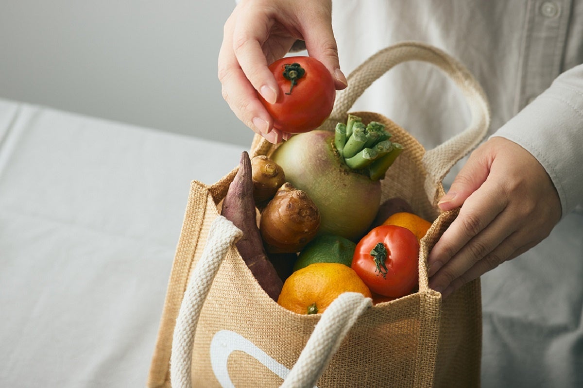 規格外や、豊作による過剰生産によって食品ロスになる野菜や果物、施設内の食品廃棄物をコンポストで農業用肥料に生まれ変わらせ育てたお米など、フードロスなどの観点から集めた選りすぐりのお得なバッグ。普段使いもできる、施設のロゴが入ったジュートバッグに詰めて当施設の開業日に500円(税込)で特別販売します。さらに、過去に装飾で使用したドライフラワーをお客様にお持ち帰りいただけるブースも登場。