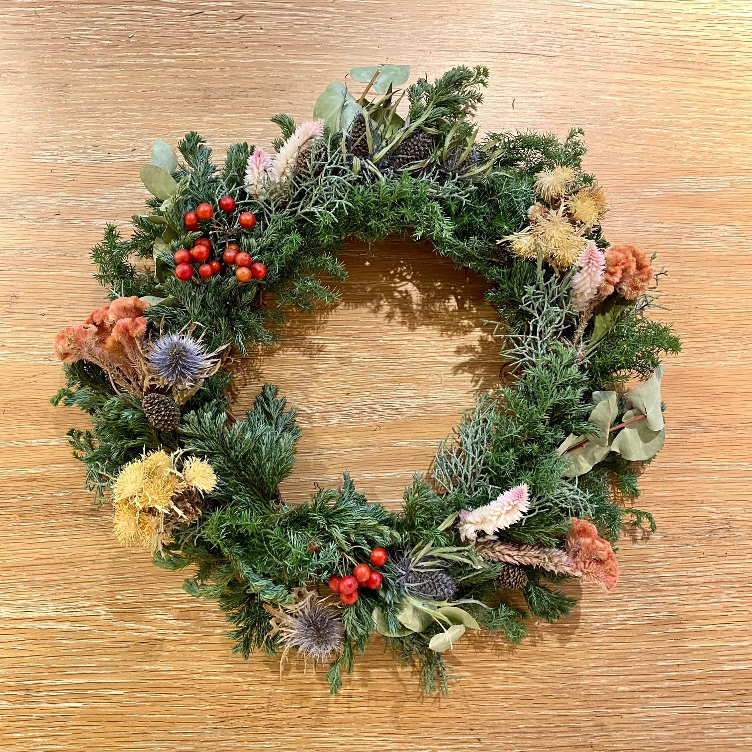 廃棄されてしまう花“ロスフラワー”を使ったクリスマスリース作りのワークショップ。イベント等で、大量に使用した花々は通常、使用後にほとんどが処分されてしまいます。廃棄される予定の植物をドライにすることで飾りとして活用。クリスマスシーズンだけでなく、自宅で長く楽しめる世界に一つのオリジナルリースが作成できます。