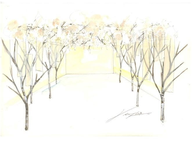 GALLERYスペースでは、通常廃棄されてしまうカカオハスク(カカオ豆の皮)で染色した布やドライフラワーを使用して、サステナブルで幻想的な空間を演出。カカオハスクで染色した布は、普段ワークショップなどで関わりのある染織ブランド「アトリエシムラ」に依頼して作成。館内のほかの装飾でも一部使用します。