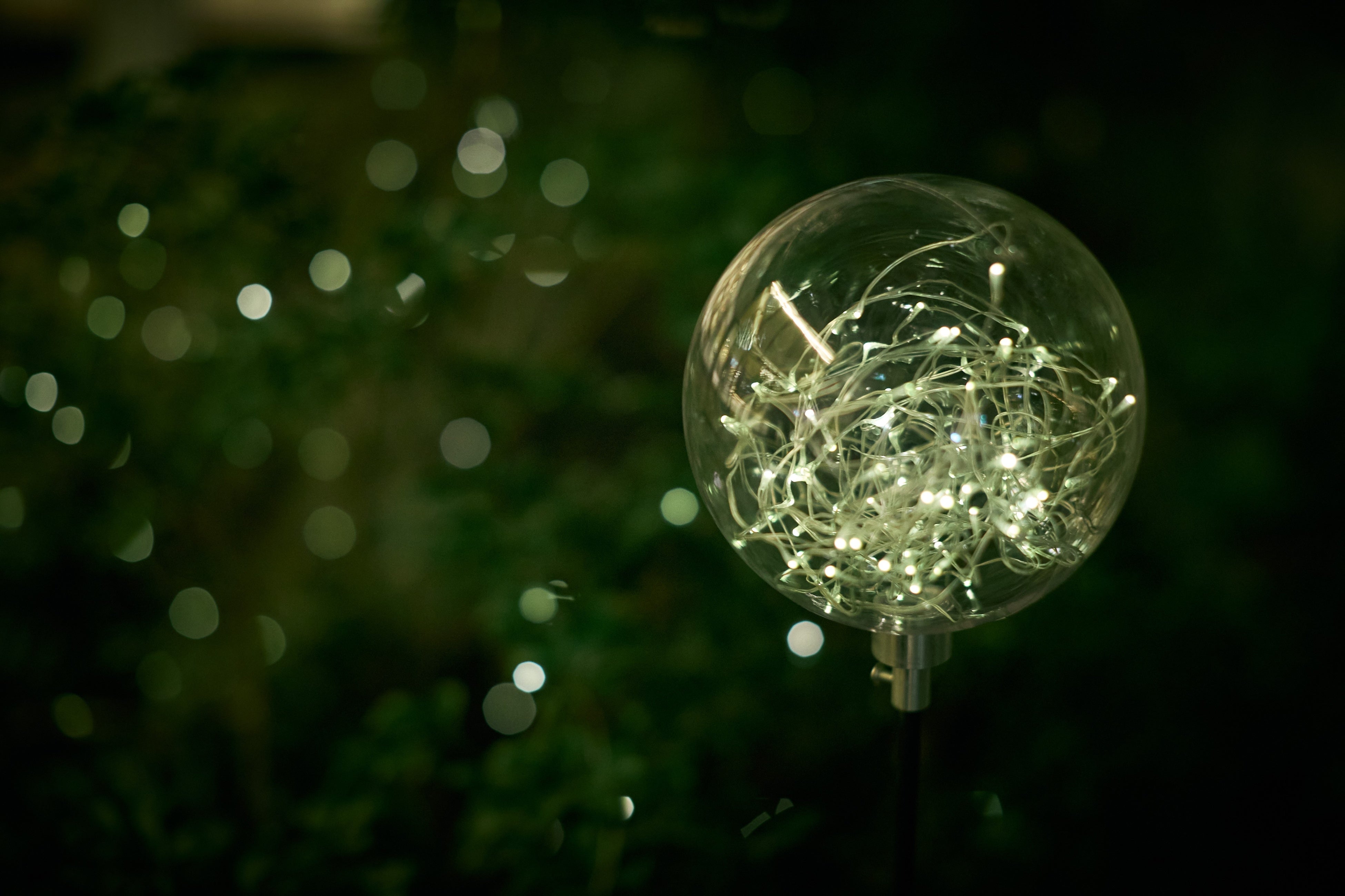 中庭と同じフロアにある枯山水には、植物が生命活動をする際に放出するエネルギーを回収し電力として使用した、植物の力で発電するボタニカルライトを設置。
