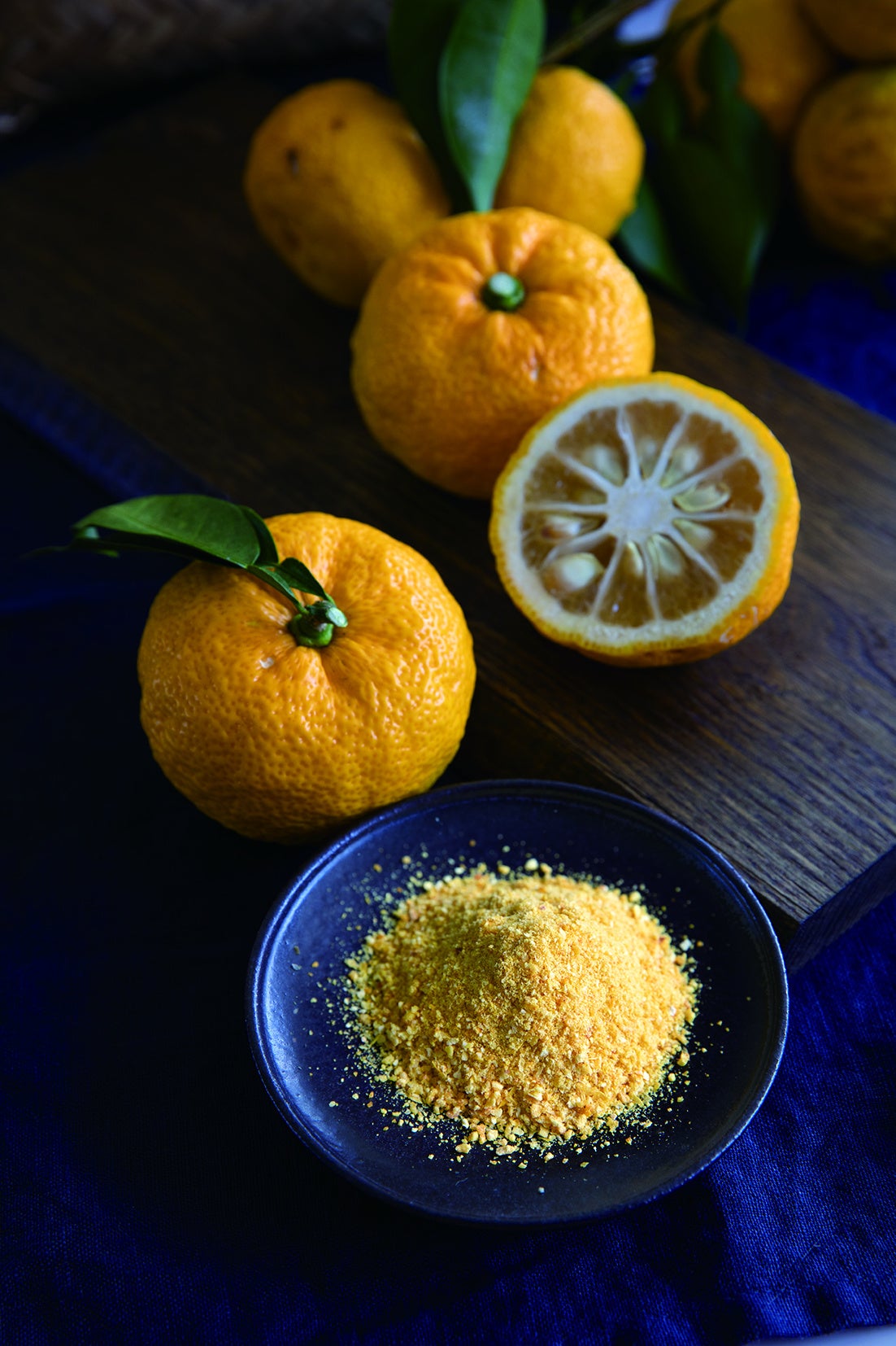静岡県榛原郡川根本町は、南アルプスユネスコエコパークに認定されており、自然に恵まれた山々と清流がゆずの栽培に最適な環境といわれています。この地域ならではの特徴的な寒暖差と豊富な日照時間が、ゆずの果皮を厚くします。そのゆずから作られるゆず粉はオリジナル製法でゆずを丸ごと乾燥させているため、他のゆず粉と比較して濃い香りが特徴となっています。