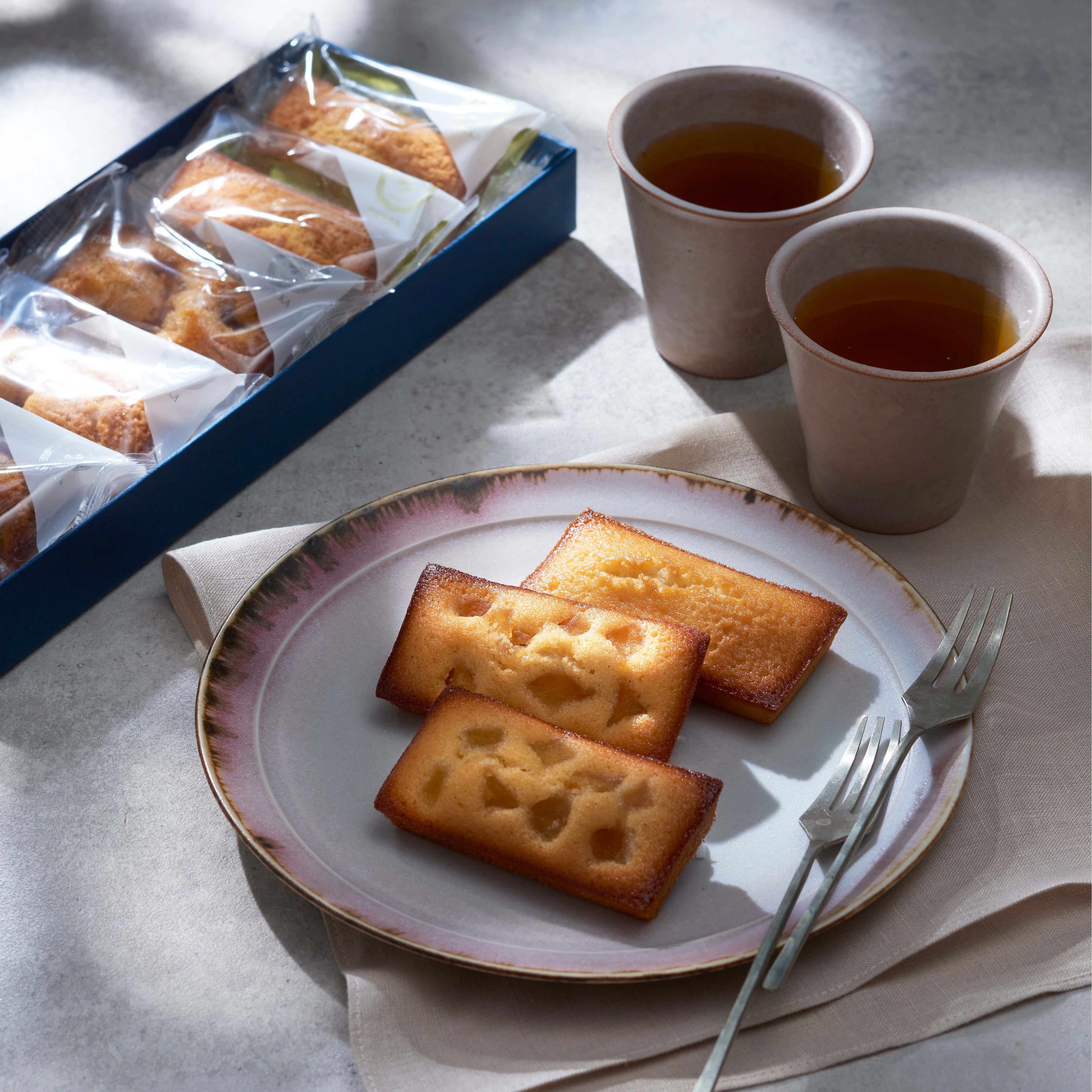 選び抜いた素 材で丁寧に、しっとり焼き上げたフィナンシェ。 品な味わいの“ 和三盆 ”と季節の味わいの“ 林檎 ”を詰め合わせました。