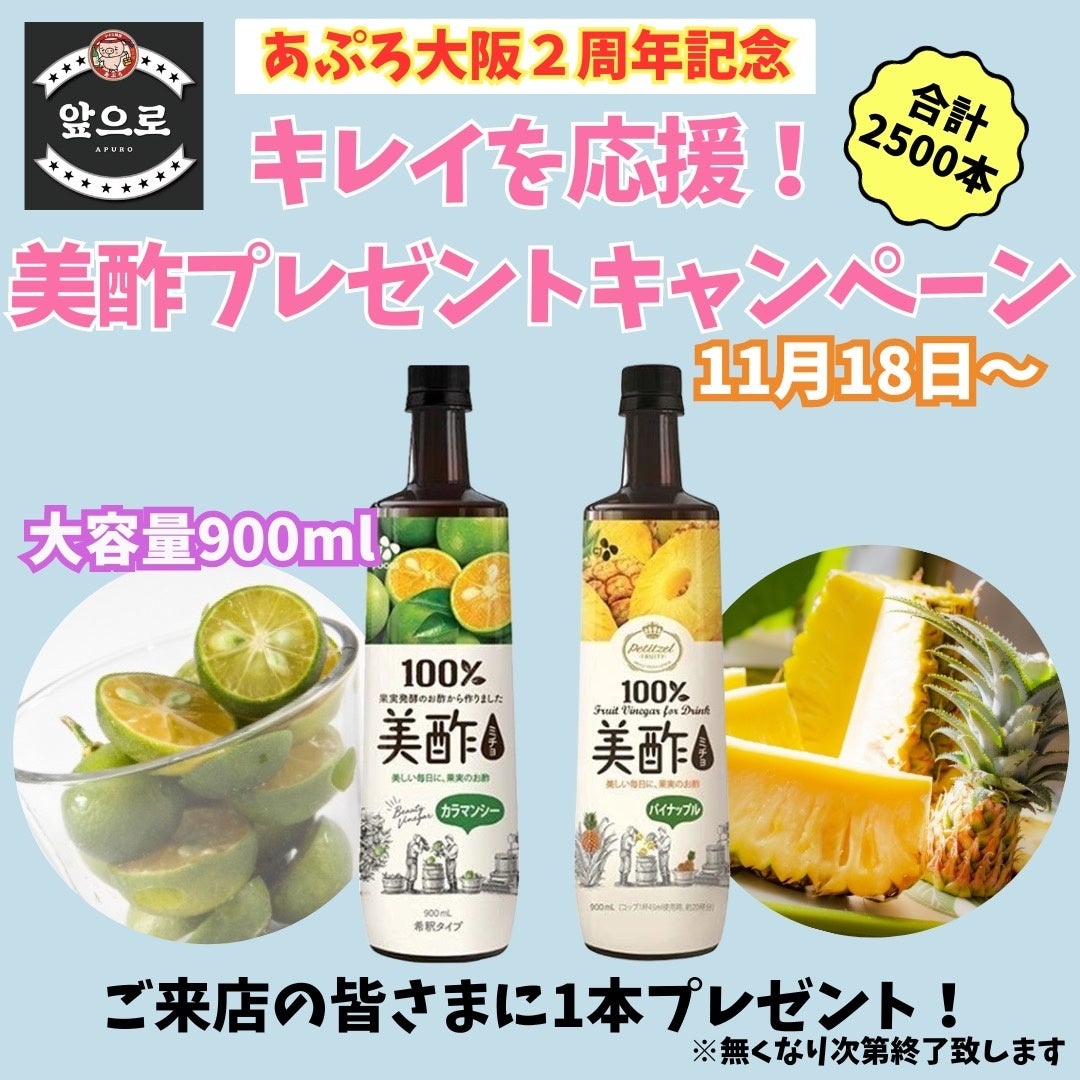 大阪上陸2周年を記念し、日頃の感謝を込めましてささやかではありますが『キレイを応援!美酢プレゼントキャンペーン』を開催いたします。