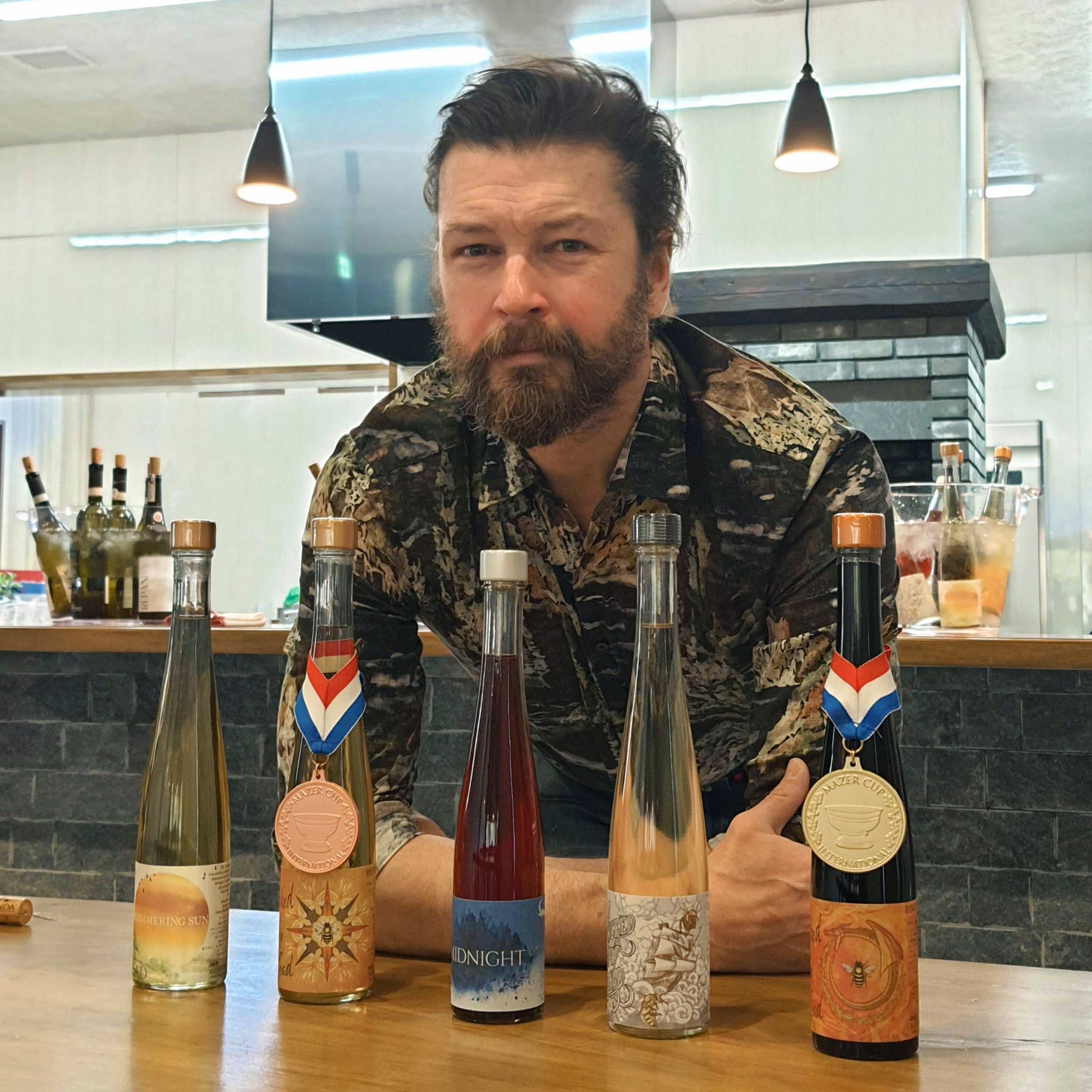 ロッキー山脈を臨む豊かな自然の中で育ち、ロサンゼルスでは映画産業に従事。日本へ移住後もモデルや俳優、フォトグラファーとして活動。2017年より日本でミード造りを開始し、養蜂家として蜂蜜の研究を重ねるだけでなく、本格的な醸造技術を学ぶためワイン教育の世界的権威であるカリフォルニア大学デービス校にて、ロバート・モンダヴィ・スクール・オブ・ワインメイキングを修了。現在は「蜂蜜の魔術師」として、自らレシピを開発しながらこだわりのミードを生み出しています。