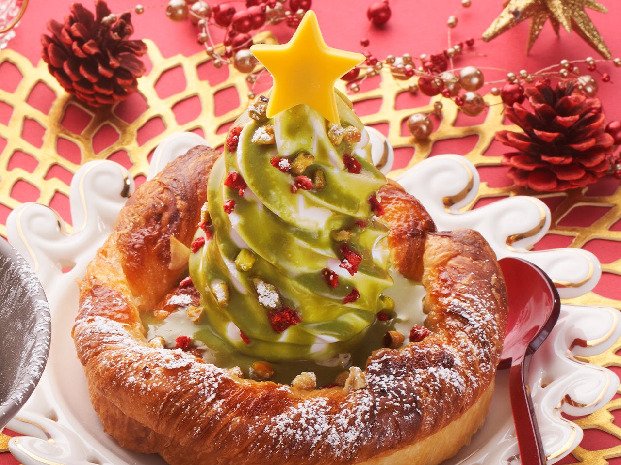 クリスマスのわくわく感を感じられる見た目と、冬の季節感を感じることができるピスタチオクリームがポイントの一品です。
