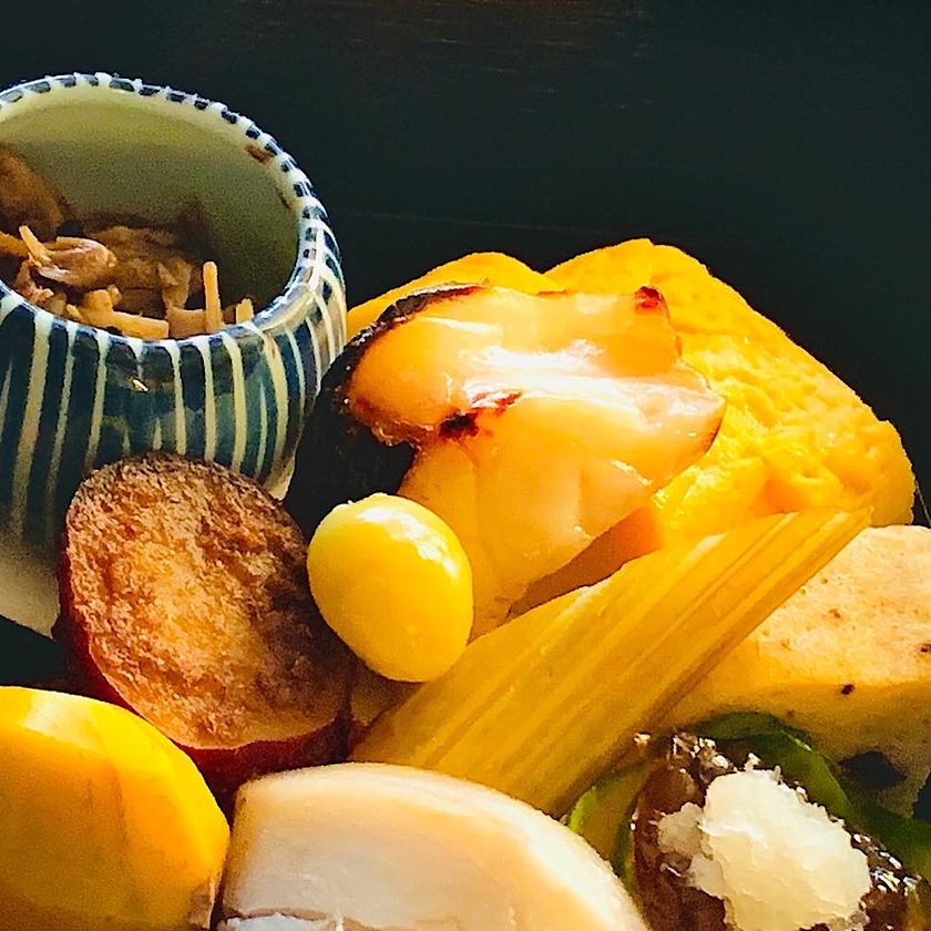 ディナーコース(未完)で人気の【暦の酒肴盛り合わせ】のお昼バージョンとして【季節の盛り込み】がついたお弁当ランチを前日までの予約いらずでご提供いたします。