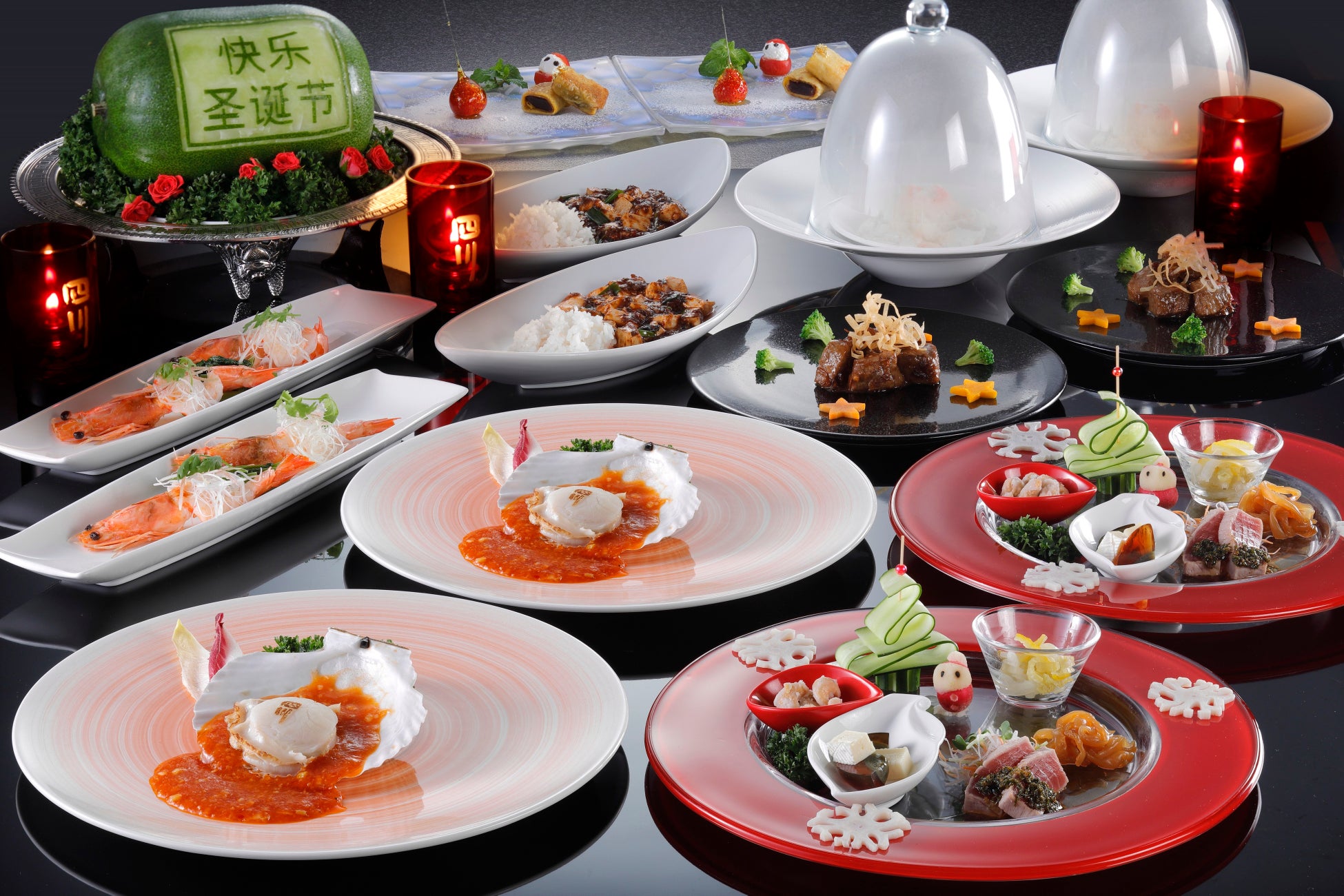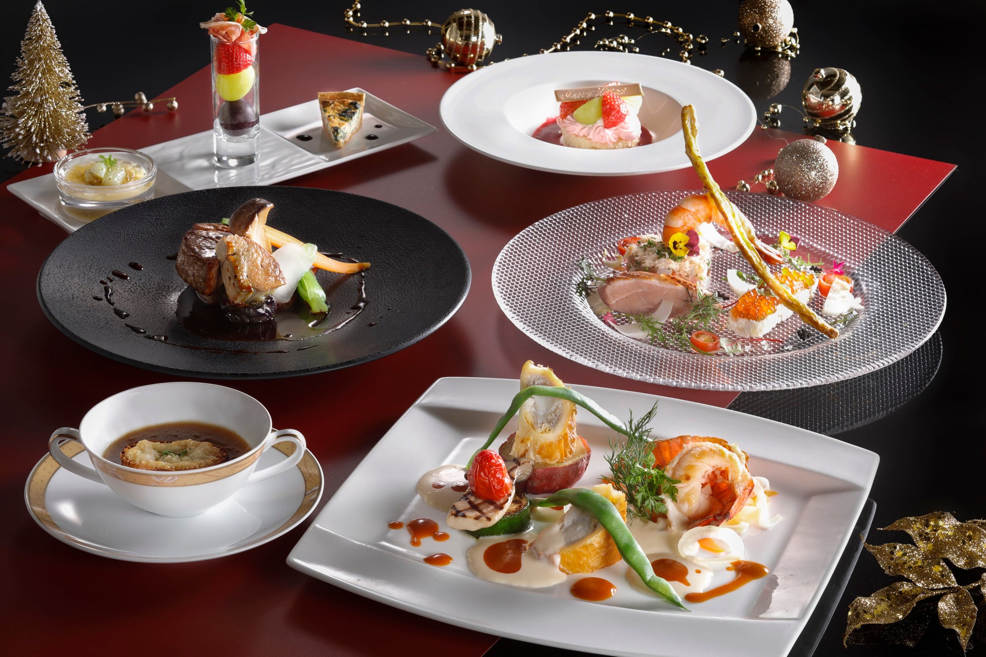 各レストランでは、蟹や海老など冬の味覚を取り入れたクリスマスにふさわしい華やかなコースをご用意しています。なかでも、日本料理 うえまちでは、2006年にオープンして以来初となるクリスマスメニューを販売します。唎酒師が選ぶ純米大吟醸もご一緒にお楽しみいただける、和牛フィレ肉の鉄板焼をメインとした会席です。落ち着いた設えの店内で、ゆったりと寛ぎながらお食事を楽しみたいという方におすすめです。
