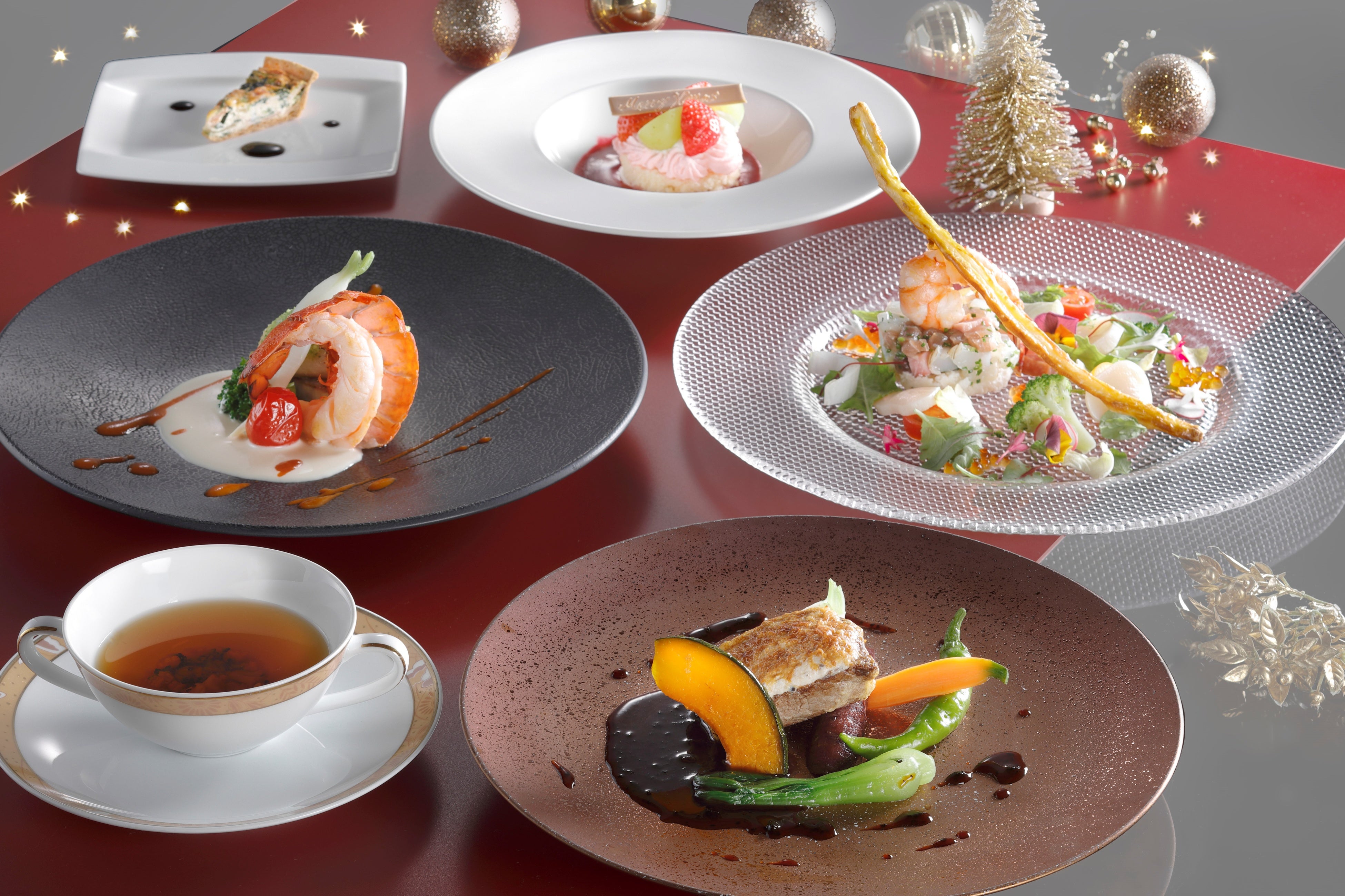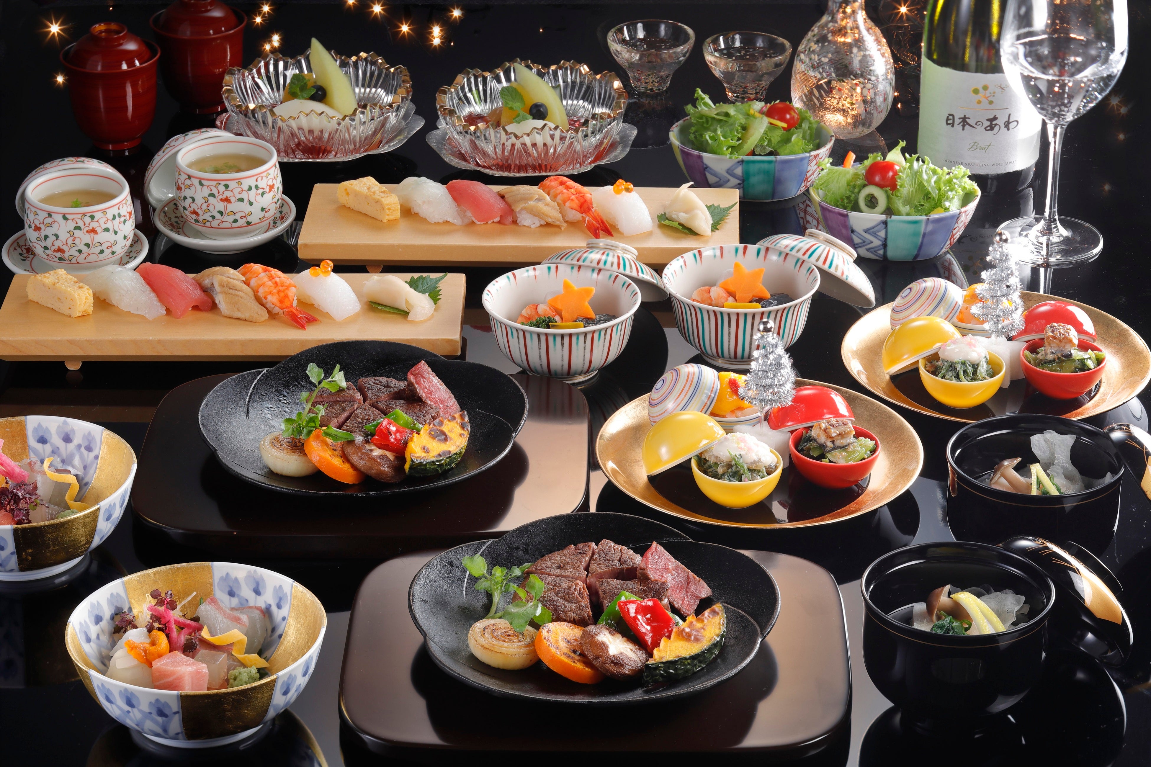 各レストランでは、蟹や海老など冬の味覚を取り入れたクリスマスにふさわしい華やかなコースをご用意しています。なかでも、日本料理 うえまちでは、2006年にオープンして以来初となるクリスマスメニューを販売します。唎酒師が選ぶ純米大吟醸もご一緒にお楽しみいただける、和牛フィレ肉の鉄板焼をメインとした会席です。落ち着いた設えの店内で、ゆったりと寛ぎながらお食事を楽しみたいという方におすすめです。