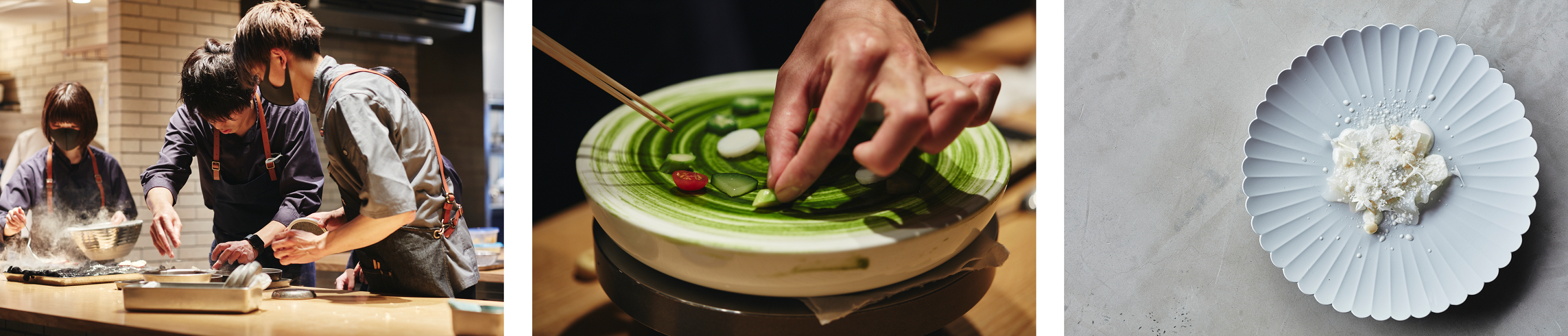 互いに、確固たる信念のもと、地元の食材への強い拘りを持つふたりのシェフ。佐賀と沖縄の食材を融合させ、ふたりの共創によって生み出されるこのとき限りのコラボレーションをお楽しみください。