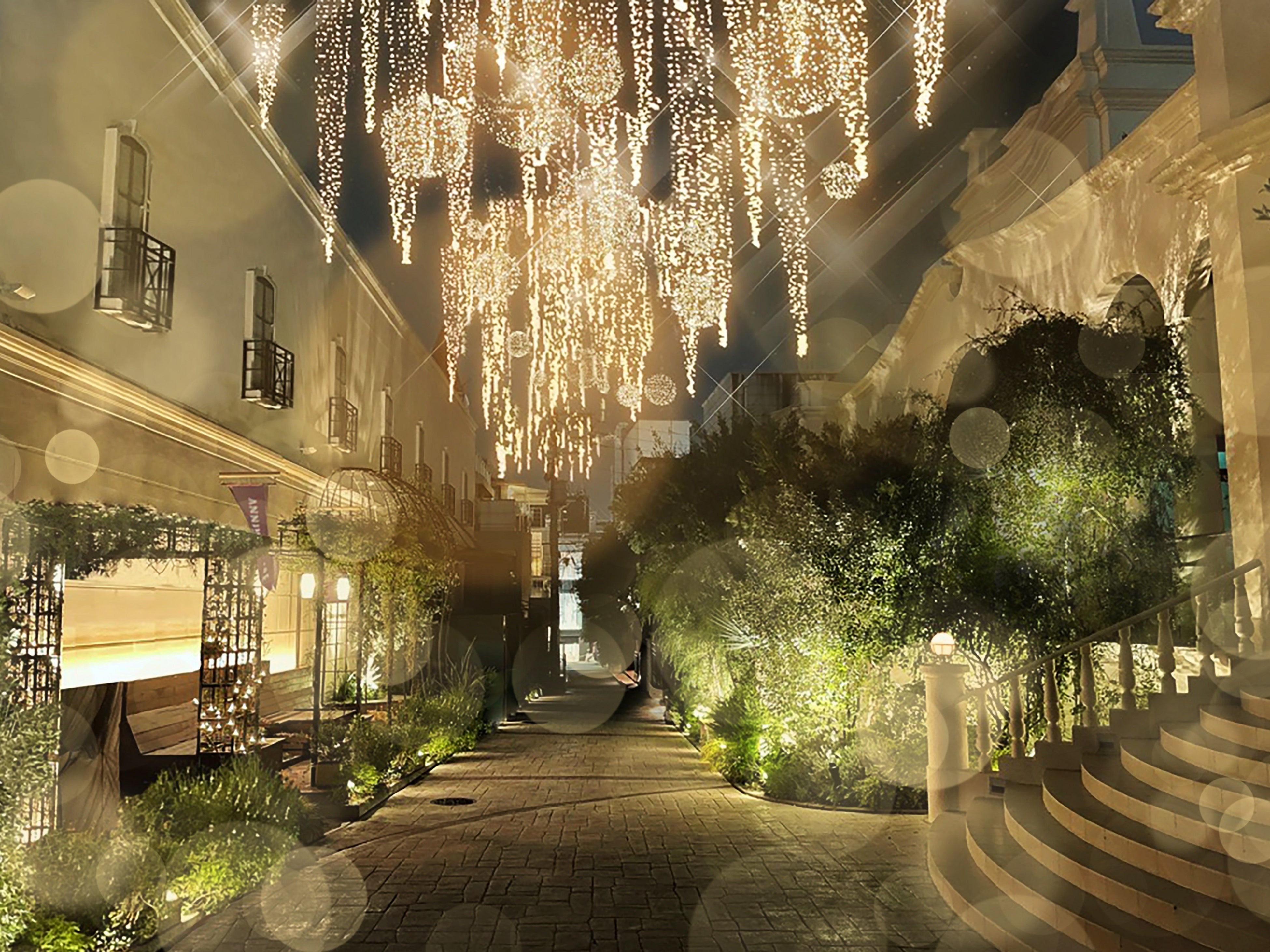 表参道の煌めく街に佇む“記念日の館”として、エントランスに象徴的なクリスマスツリーを期間限定で設置いたします。また、表参道の通りから一歩エントランスへ入ると、開放的な空間で和やかな賑わいを感じられる場所が広がります。ホリデーシーズン限定で館内、そして回廊を抜けた先のチャペル広場に初めてイルミネーションを施します。シャンパンゴールドを基調とした上質な空間を演出し、幸せな賑わいを創出する新スポットとしてロマンティックなひとときをお過ごしいただけます。