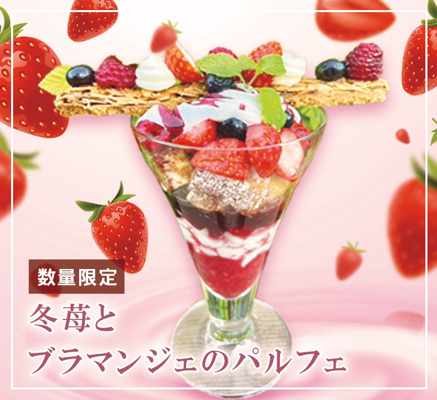 デザートもオススメ!冬苺を贅沢に使用した「冬苺とブラマンジェのパルフェ」