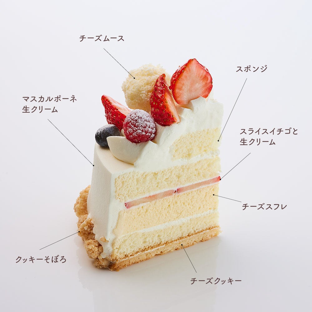 数種類のクリームチーズをブレンドしたなめらかなチーズスフレと、クリーミーでまろやかなマスカルポーネ生クリームが織りなす、優しい美味しさとコクの深い味わいをお楽しみください。