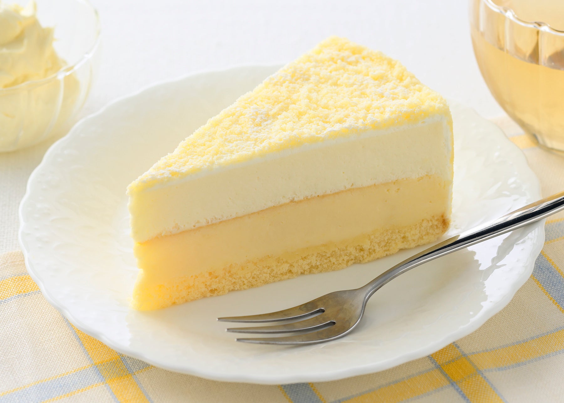 特長:しっかりとコクのあるベイクドチーズと、まろやかで乳味のあるレアチーズを重ねて仕上げました。食感や口どけの異なる2種類のチーズ生地を同時に楽しめます。