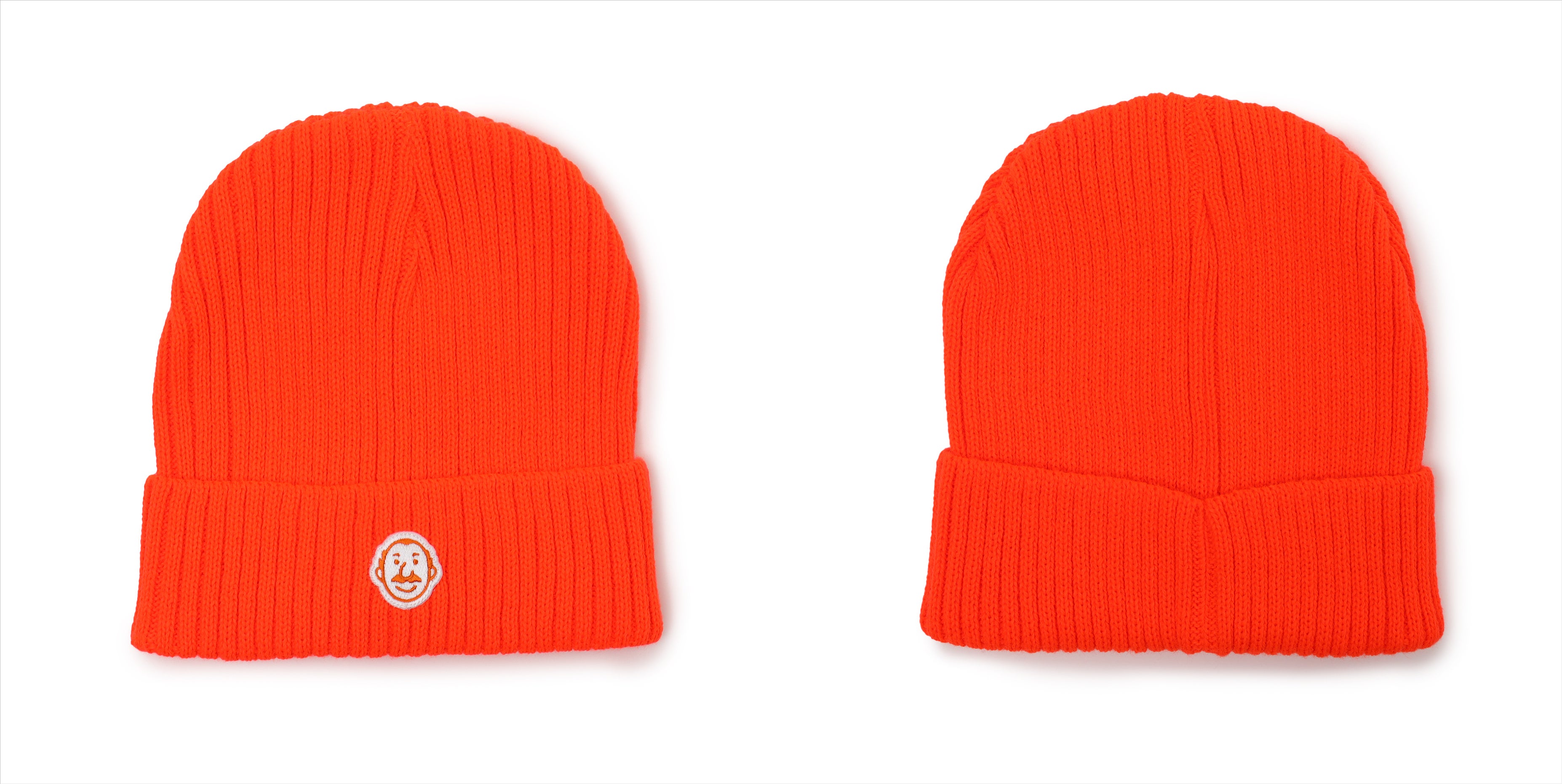 飾る『ピエトロおじさん』は、おなじみのポップなタッチそのままです。また、色鮮やかなワッチキャップは『ピエトロドレッシング』の代名詞であるオレンジキャップをイメージ。そして、総柄のバンダナは、ピエトロスタイルのBEAMSロゴの中にひとつだけ本物の『ピエトロ』ロゴを隠し、BEAMSらしい会話が生まれるユニークな仕上がりとなりました。