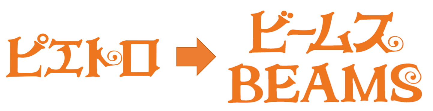 「ピエトロ」のロゴを「ビームス」にアレンジ。欧文バージョンでも制作しました。