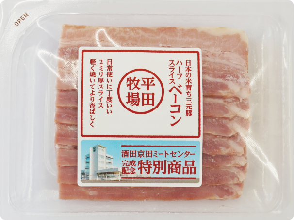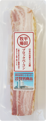日本の米を食べて育った自社生産のブランド豚「平田牧場三元豚」のバラ肉を使用し、素材の旨みや甘みを最大限に活かしたベーコンです。「日本の米育ち三元豚ハーフスライスベーコン」は、日常使いに丁度いい、2ミリ厚スライスのベーコンで、さっと焼いてもそのままでも美味しく召し上がれます。軽く焼くことで、より香ばしくおいしさを楽しめます。「日本の米育ち三元豚ブロックベーコン」は、上質な白身に燻製の香りが楽しめる、ブロックタイプのベーコンで、ポトフ・スープ・肉じゃがやシチューなどの煮込み料理、グリルなどの焼きものとしても絶品です。