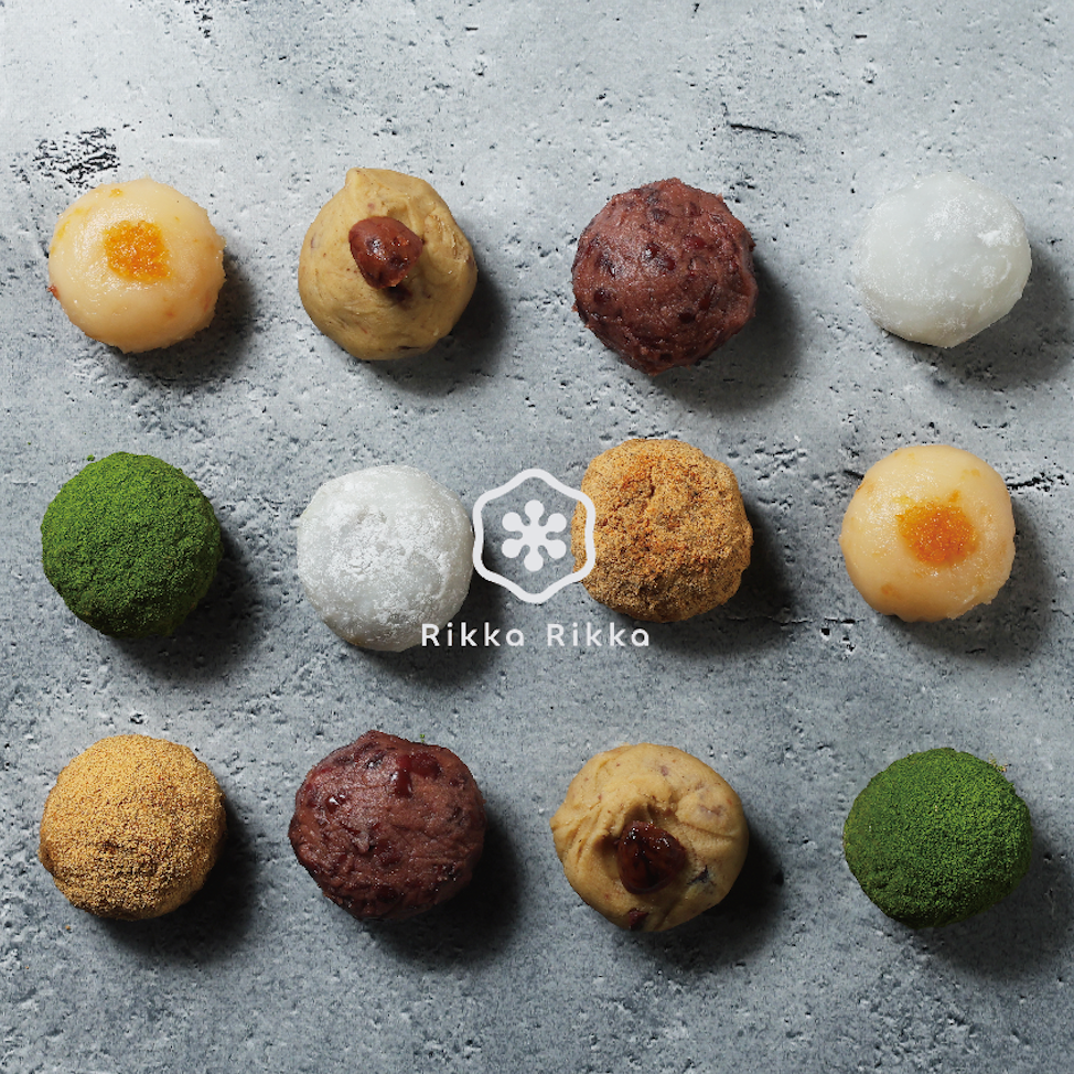 Rikka Rikka 最初の商品は、厳選した国内産材料と製法にこだわって仕上げた、おはぎと大福が6種類セットになった「むつのはな」です。大切な人への特別な贈り物に、自分へのご褒美に、新しい定番が加わりました。