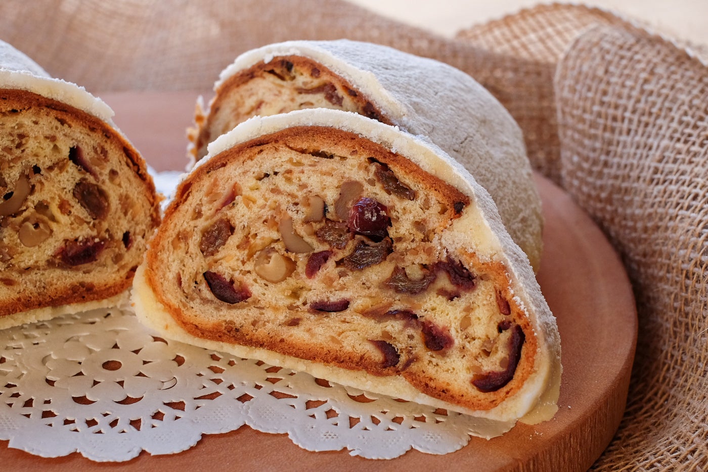 惜しげもなくナッツやドライフルーツを使った贅沢なシュトーレンです。洋酒やスパイスを使わず、香りの強いものが苦手な方でも美味しく召し上がっていただけます。シンプルですが奥の深い味わいをお楽しみいただけます。