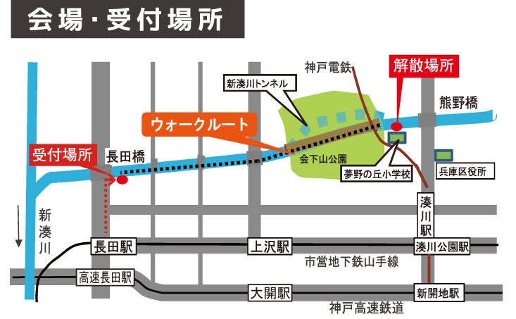 スタート場所:長田橋上流 河川降り口踊り場(長田区六番町)