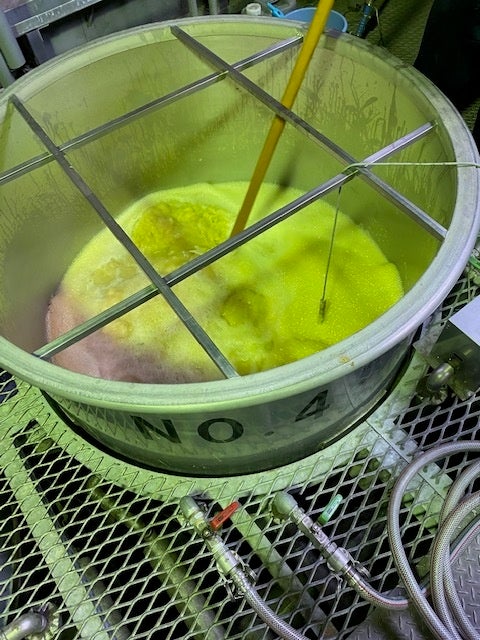発酵の際には酵母が最もよく働く温度を保つようタンクの温度を調整しています。温度管理することにより発酵効率をあげ、ウイスキーの元となるアルコール成分をつくります。