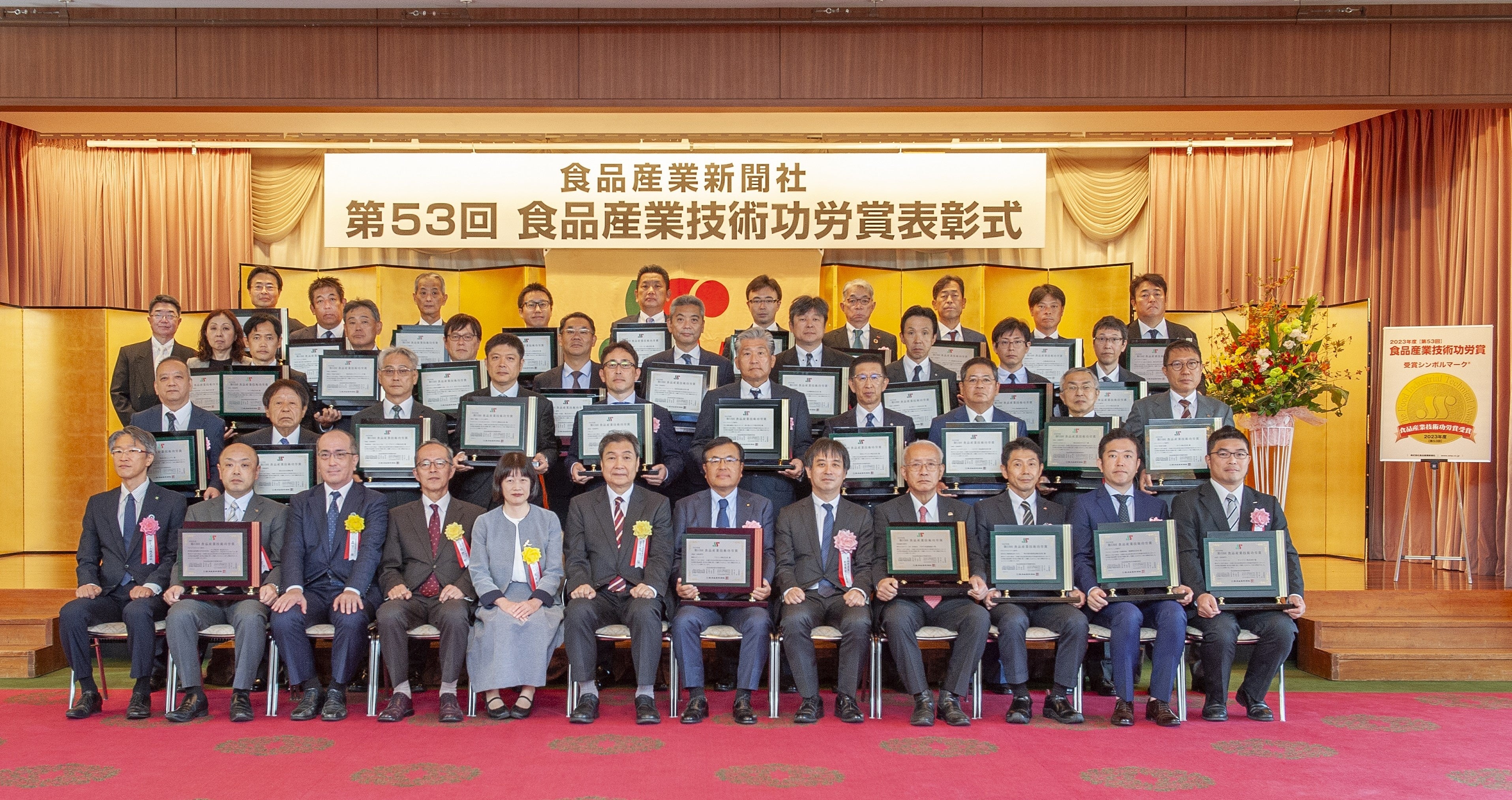 「食品産業技術功労賞」は、日本の食品産業の発展に著しく貢献した企業、または個人、団体を顕彰する、食品業界の歴史あるアワードです。食品産業新聞社の創立20周年を記念して1971年に制定し、今年で53回目となります。公的立場にある選考委員が、部門別に功労賞を選定し、毎年1回表彰しています。
