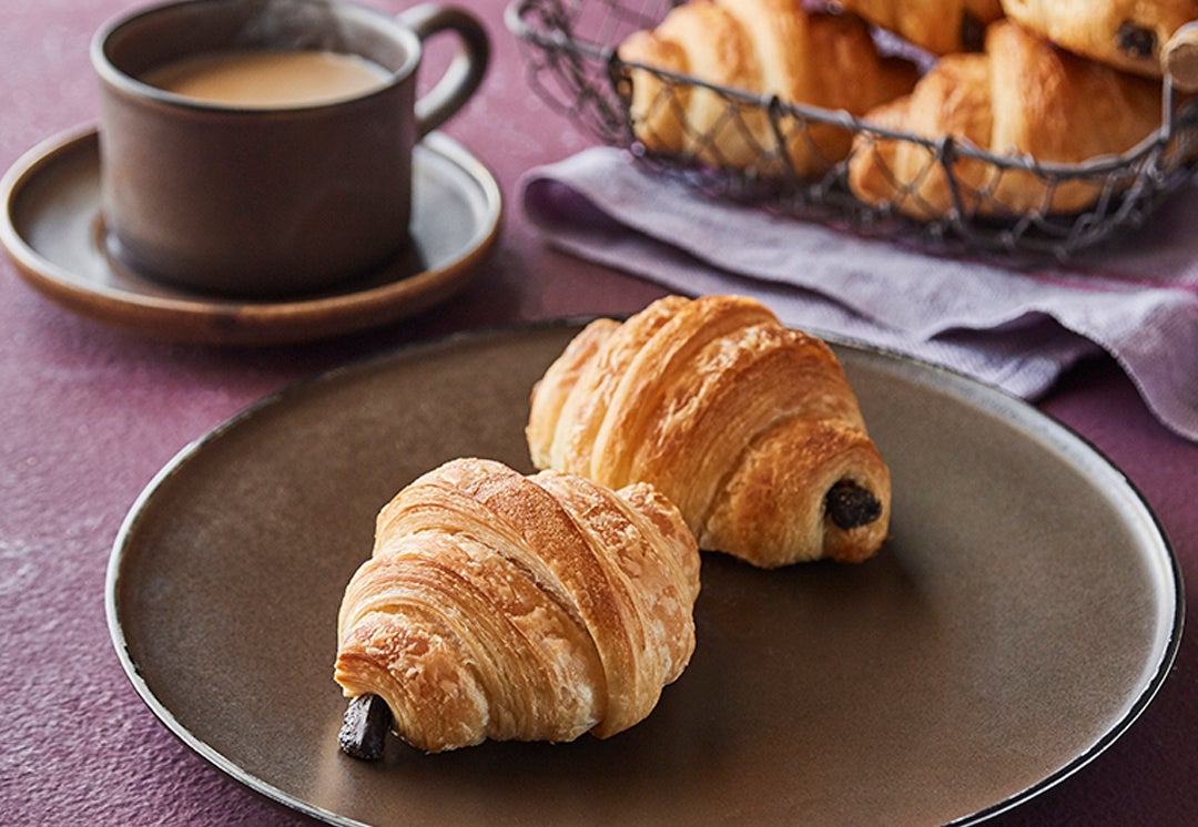 特長: サクサク食感のクロワッサンにとろっと溶け出すチョコが絶品。カカオ48%のフランス産チョコを使用しています。