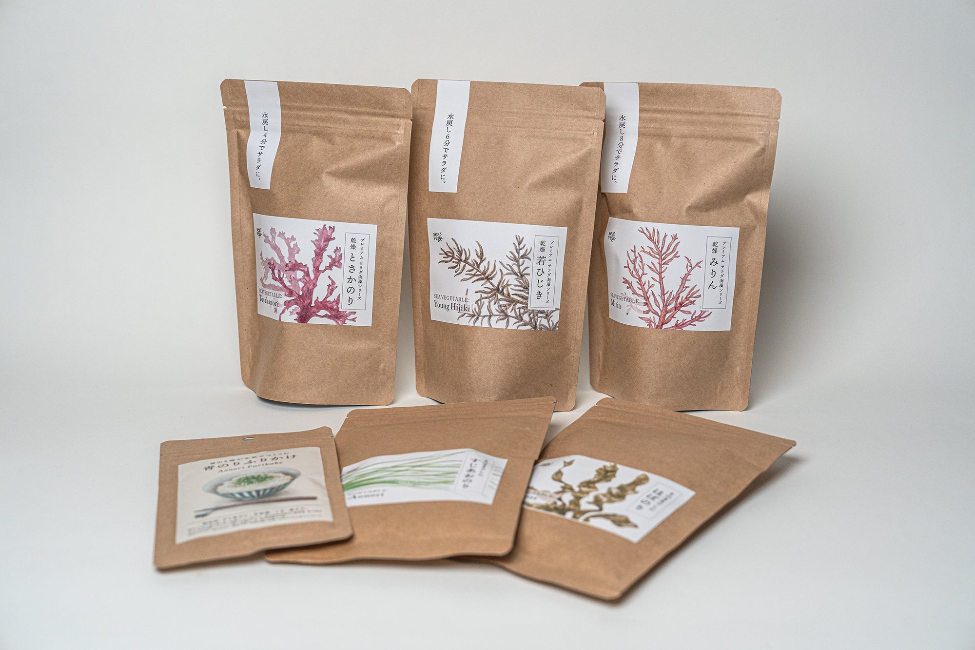 たっぷりの水に入れて戻すだけ。採れたての新鮮な味わいや食感を残すため、シーベジタブルの商品開発チームがこだわりの加工方法で仕上げた新シリーズの海藻です。