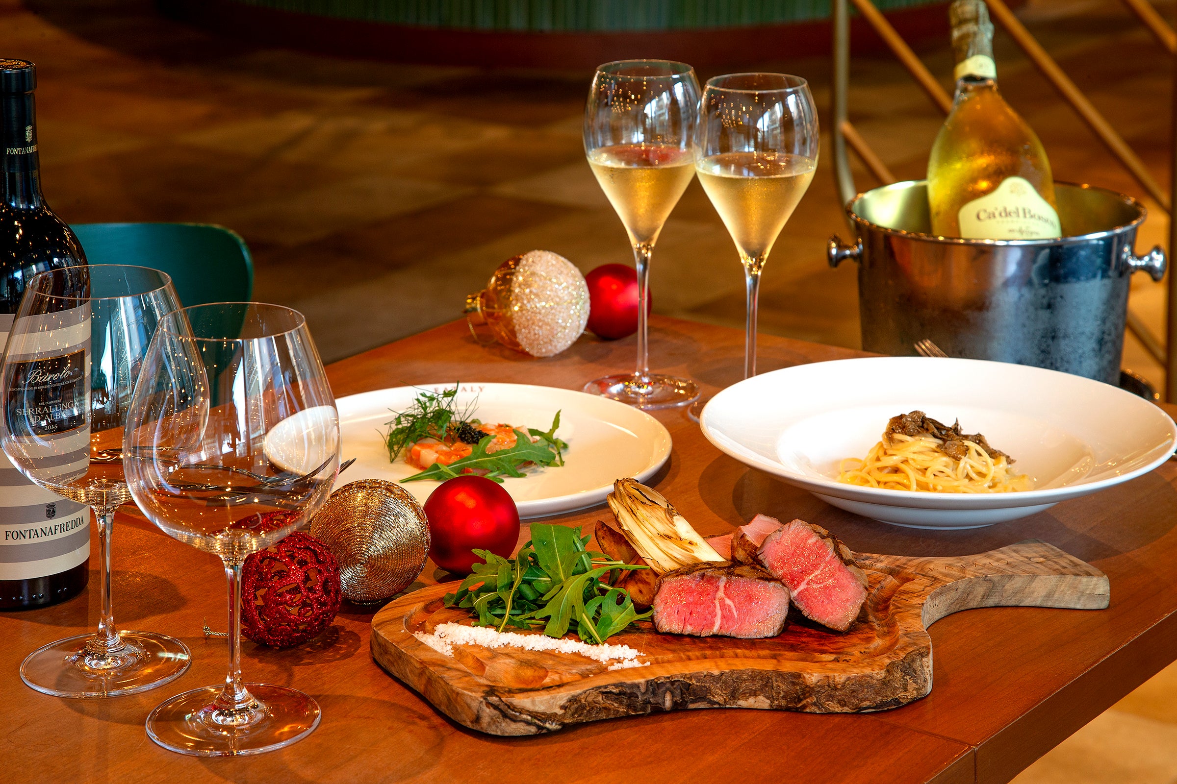 クリスマスシーズンは、カフェ&カウンターのグラスワインもフランチャコルタやバローロなどをご用意しておりますので、充実したアペリティーボをお楽しみいただけます。
