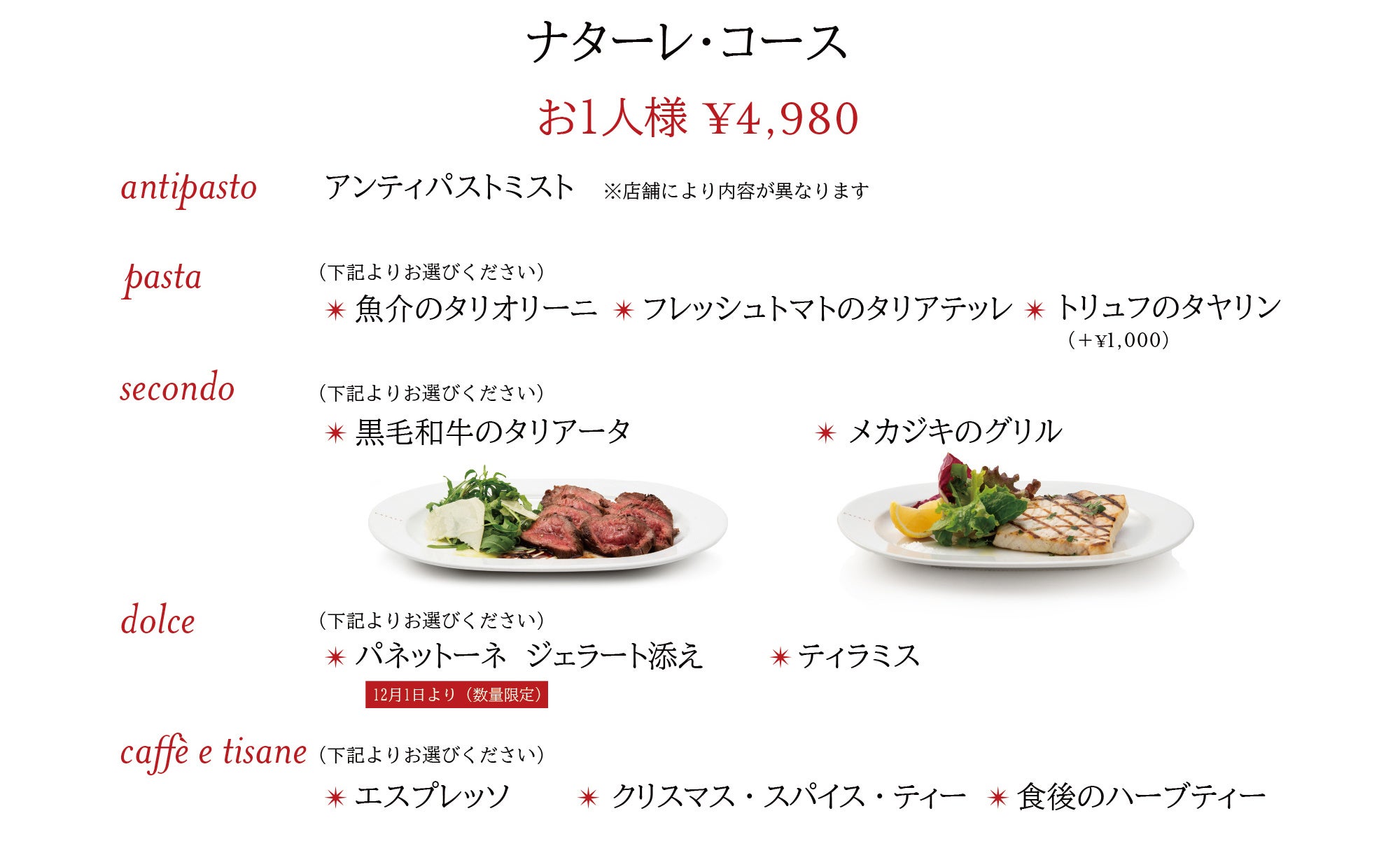 イタリアの素晴らしい食文化を伝えるイータリーがご提供するクリスマスシーズンのナターレメニューは、伝統的なイタリア料理をゆったりとくつろげるレストランにてお楽しみいただけます。