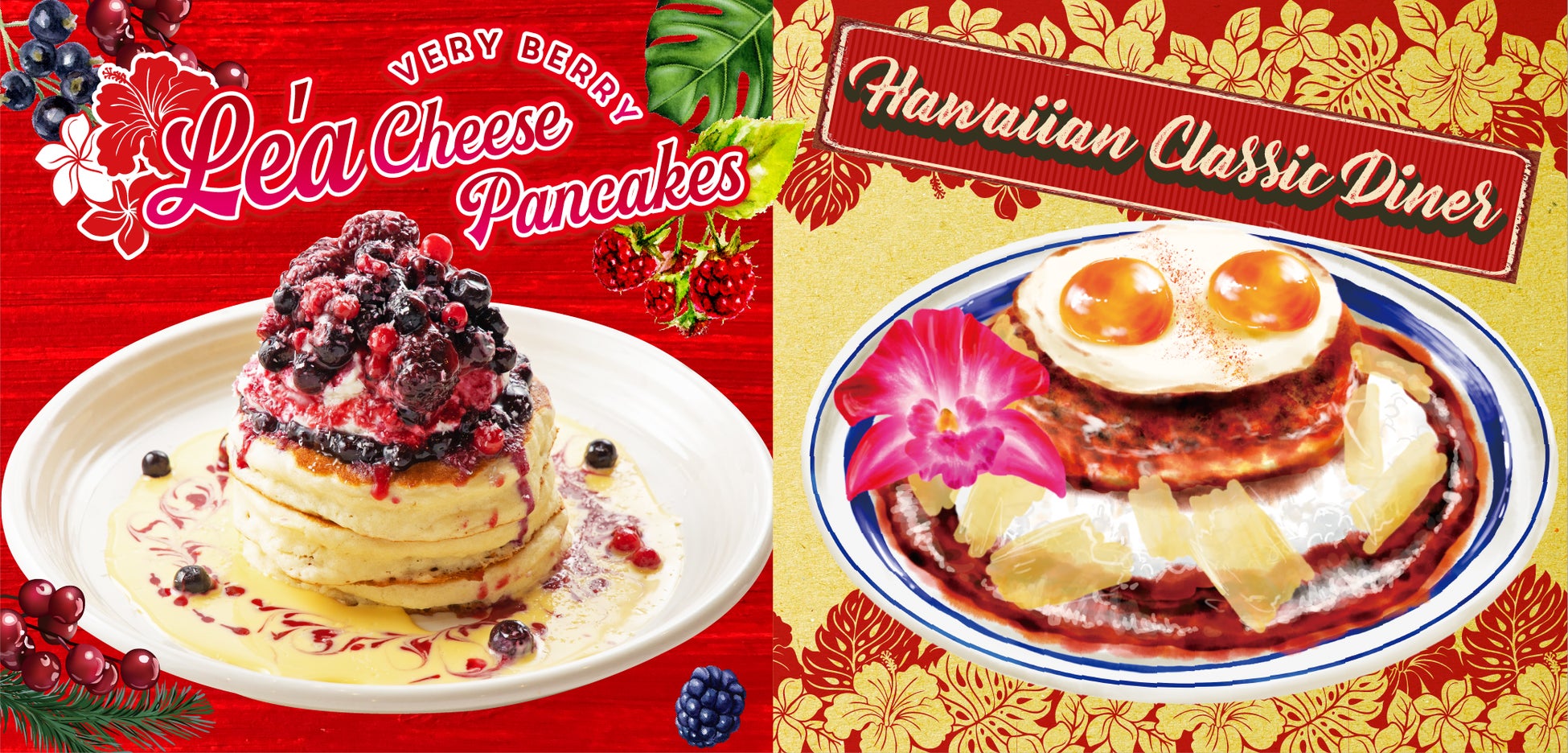 レアチーズケーキをイメージしたふわふわのチーズムースに、ゴロっと果実のミックスベリーソースを贅沢に使ったコナズ珈琲の新作パンケーキです。パンケーキの周りには、ココナッツが香るアングレーズソースをたっぷりと使い、ハワイ仕立てに仕上げたホリデーシーズン限定メニューです。