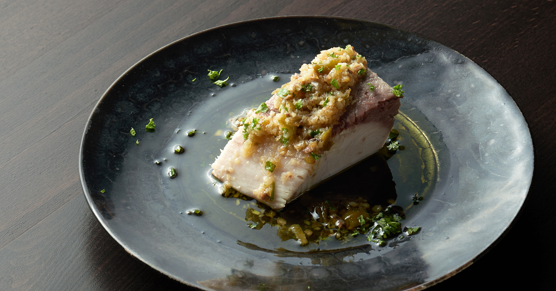 最高峰養殖魚の百年はまちに、野生胡椒の華やかな香り、醤油のコク、ガーリックの旨味が加わり、パーフェクトな味わいをお楽しみいただけます。