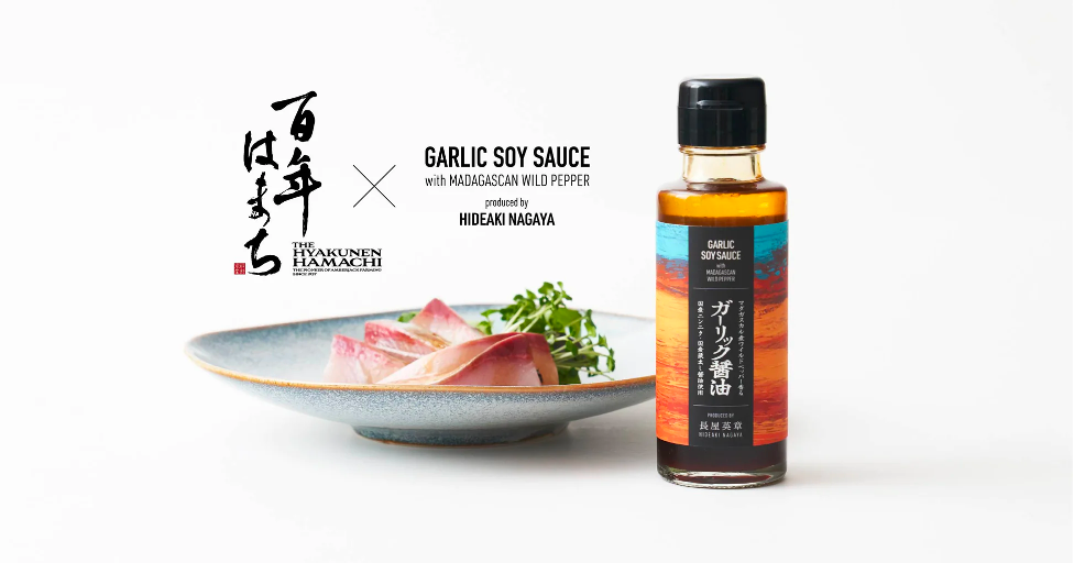 長屋シェフがグローバルに活動する中での気付きは、海外ではソース文化に馴染みがあるため、醤油をつけ過ぎてしまう場面が多いということ。日本の「刺し身文化」と海外の「鮮魚のカルパッチョ」文化の間、つまりはタップリとつけても美味しく召し上がることのできる「NEO SOY sauce」がコンセプト。四世代にわたり日本のハマチ養殖発祥の地で百年の歴史を紡ぎ、次の百年に繋げるべく研鑽を続けている、世界に誇るCRAFT FISH「百年はまち」を国内外の人に最も美味しく召し上がっていただきたいという想いが開発のきっかけでした。