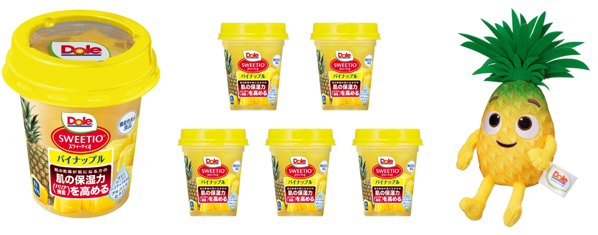 「スウィーティオパイナップル」に含まれる「パイナップル由来グルコシルセラミド」には、肌の保湿力(バリア機能)を内側から高める機能が報告されており、一口サイズに加工したパイナップルならではの手軽なおいしさを味わいながら乾燥肌対策ができます。※消費者庁「機能性表示食品の届出情報」に基づく。