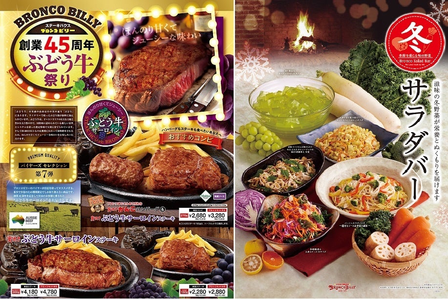 この度 創業45周年を記念し、脂の甘さを堪能できステーキに最適な部位・サーロインを皆さまに楽しんでいただこうと、バイヤーズセレクション第7弾として期間限定でお届けします。ブロンコビリーの歴史の中でも、今も「ぶどう牛」はファンの皆さまから支持される大人気のメニューです。お早めにお楽しみください。