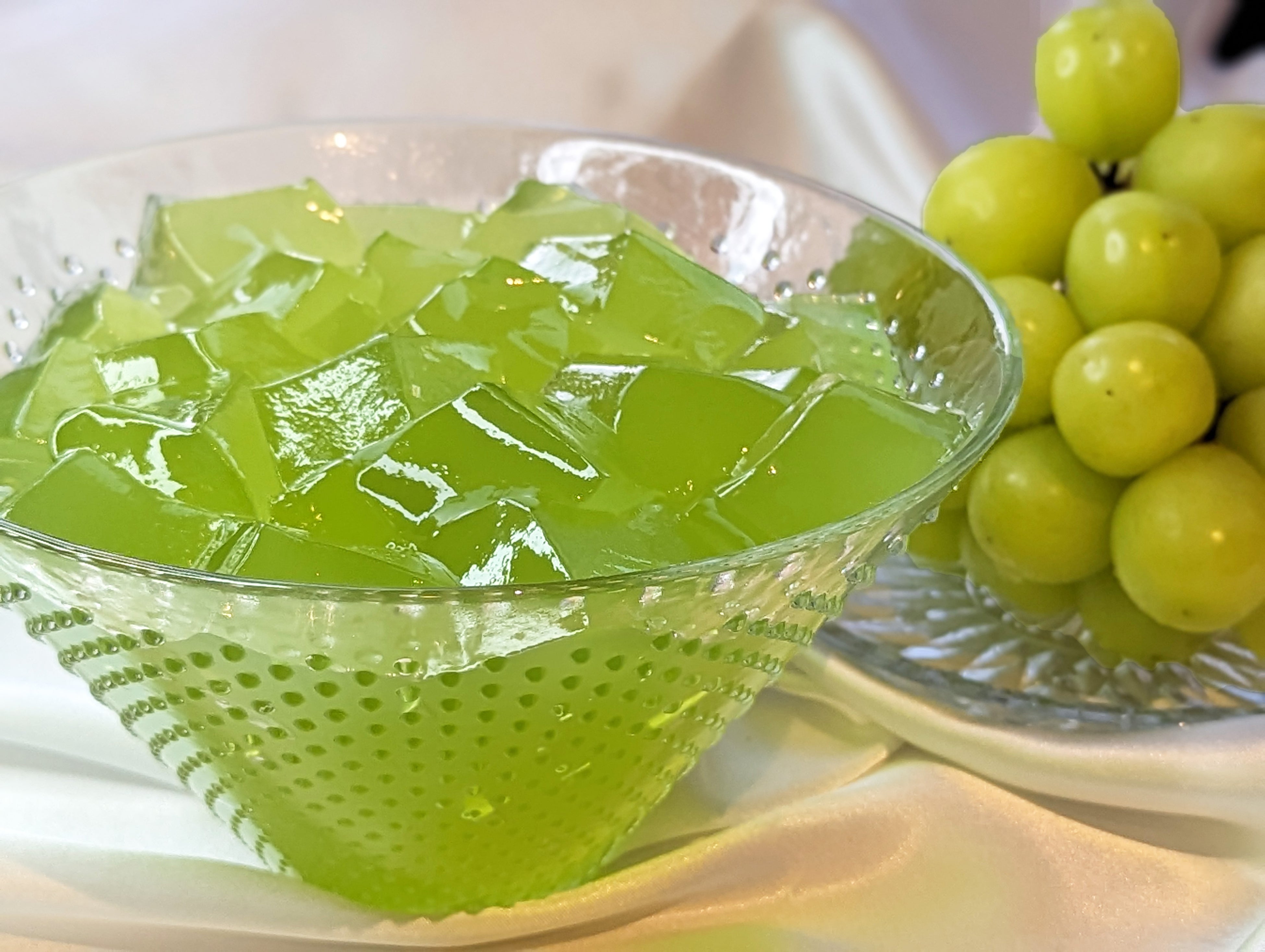お客様に大好評だったゼリーが再登場!シャインマスカットの芳醇な風味と、白ワインを加えてさっぱりで上品な味わいで、お子さまでもお楽しみいただけます。