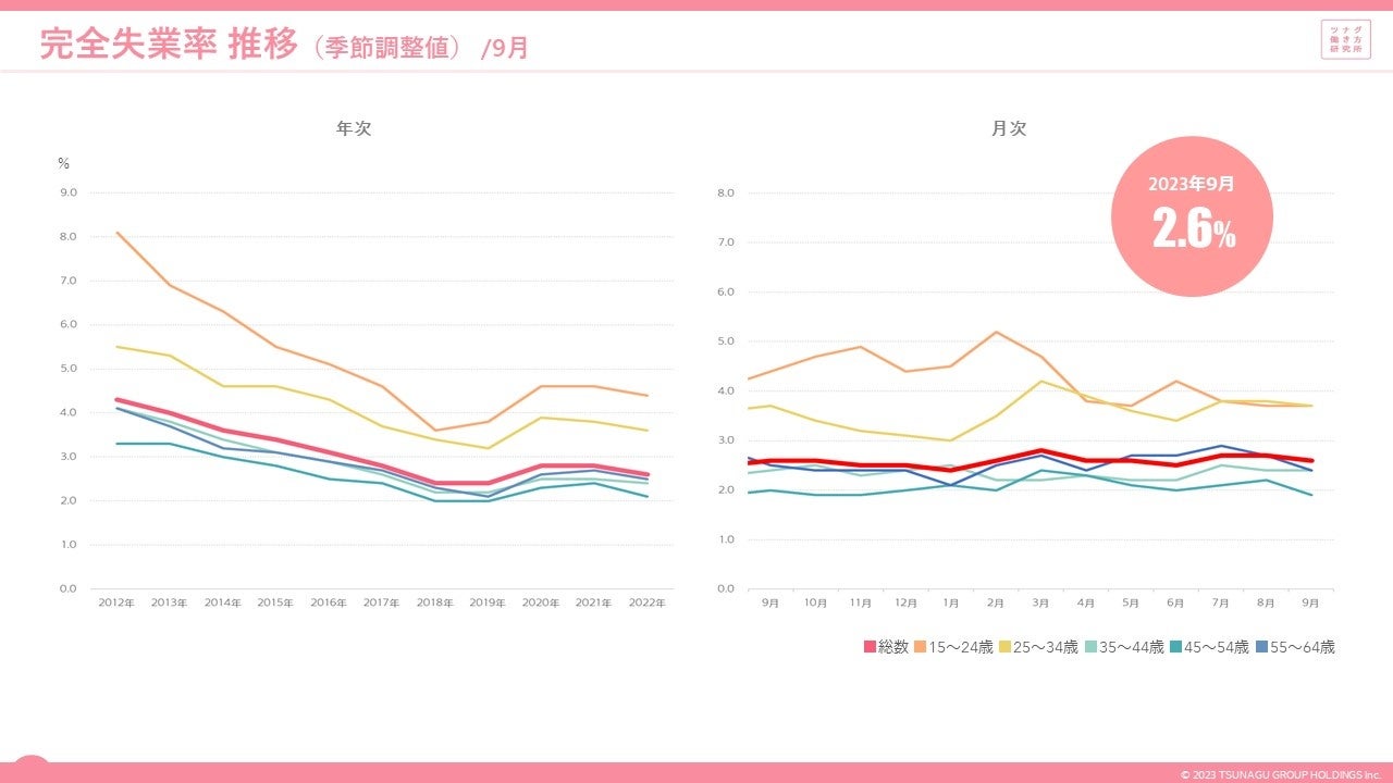 2.完全失業率は2.6%。前月差-0.1ポイント、前年同月差と同水準