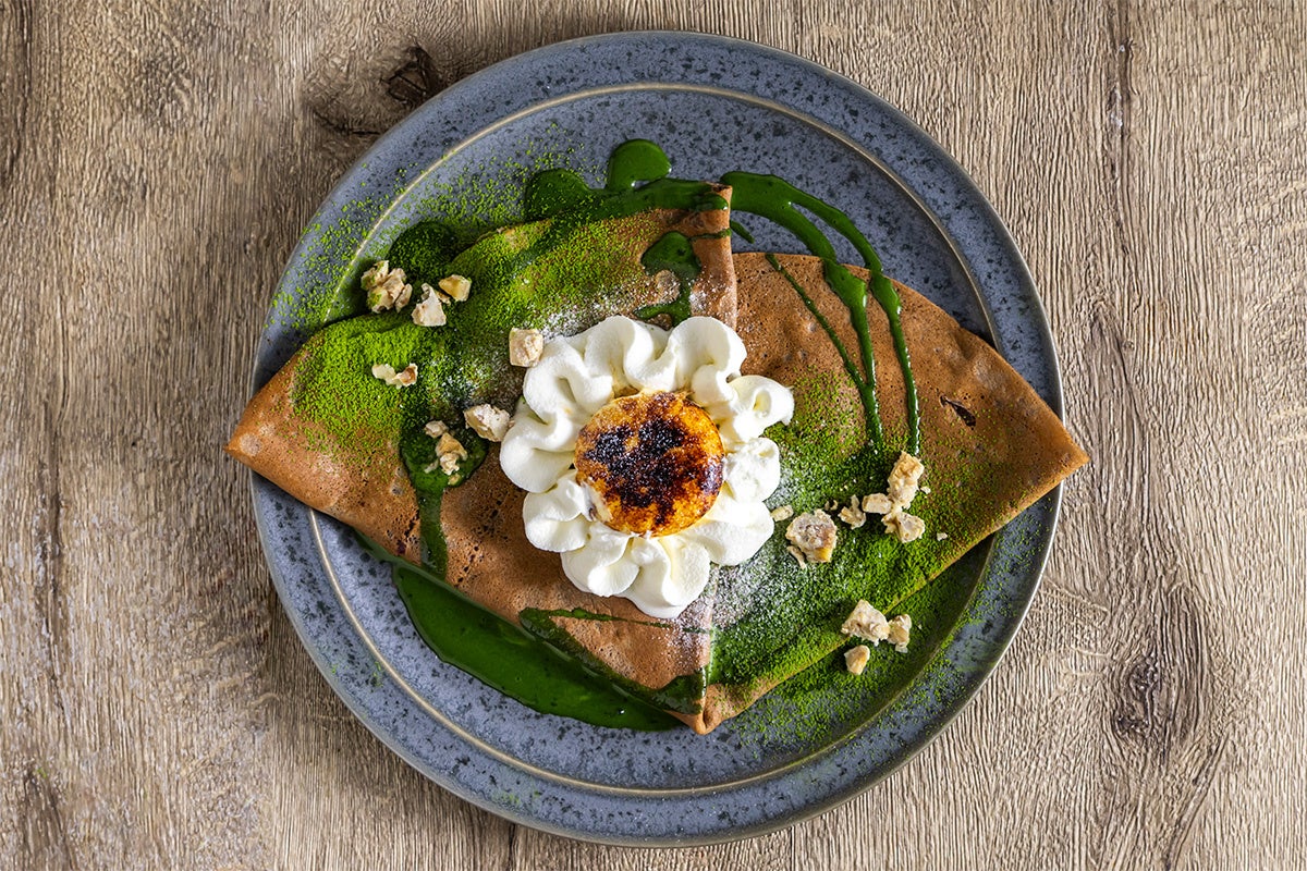 抹茶ショコラとクレームブリュレのクレープ