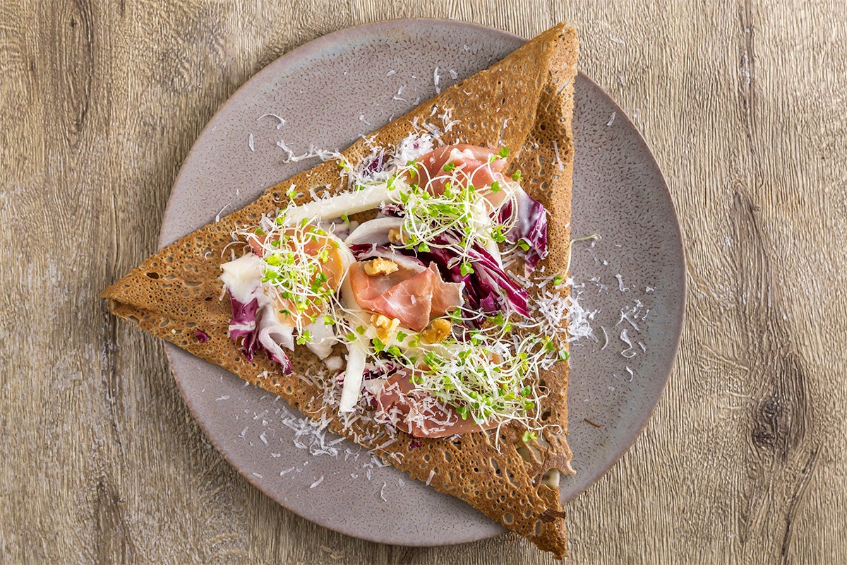 小麦に比べてヘルシーで栄養価も高いので、フランスで日常的に愛されるお食事クレープです。