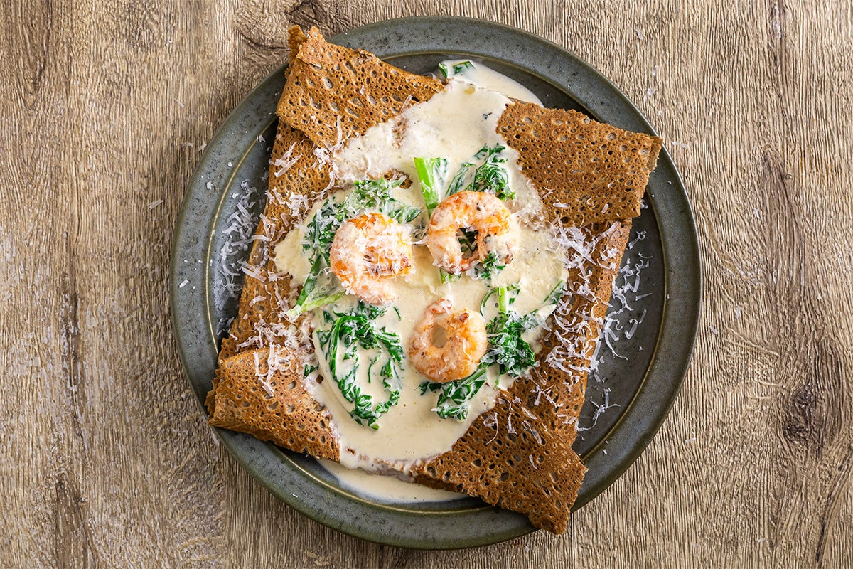 海老とケールのシードルクリーム煮込みガレット