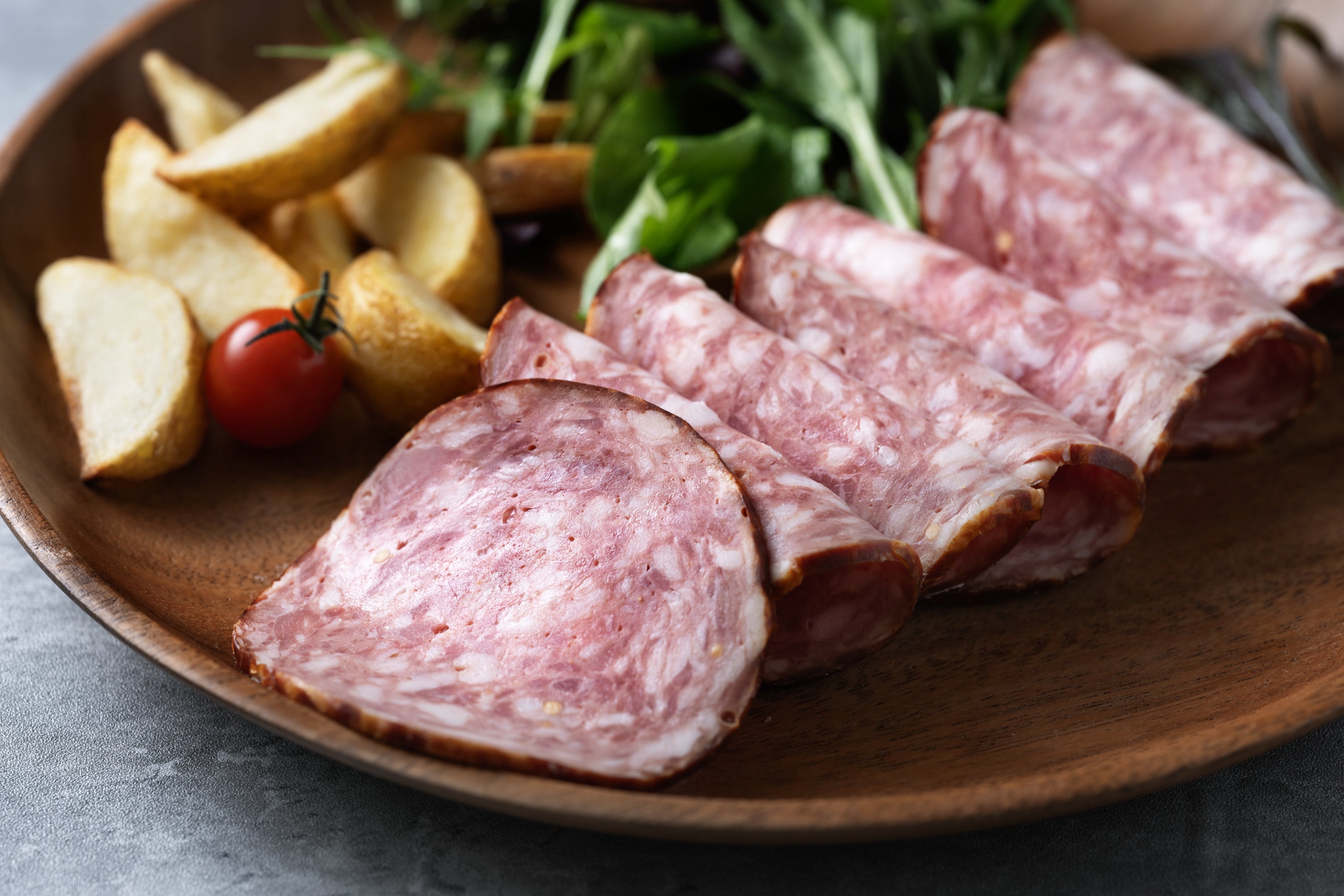 原材料:豚肉、食塩、香辛料/リン酸塩(Na、K)、酸化防止剤(ビタミンC)、調味料(アミノ酸)、発色剤(亜硝酸Na)