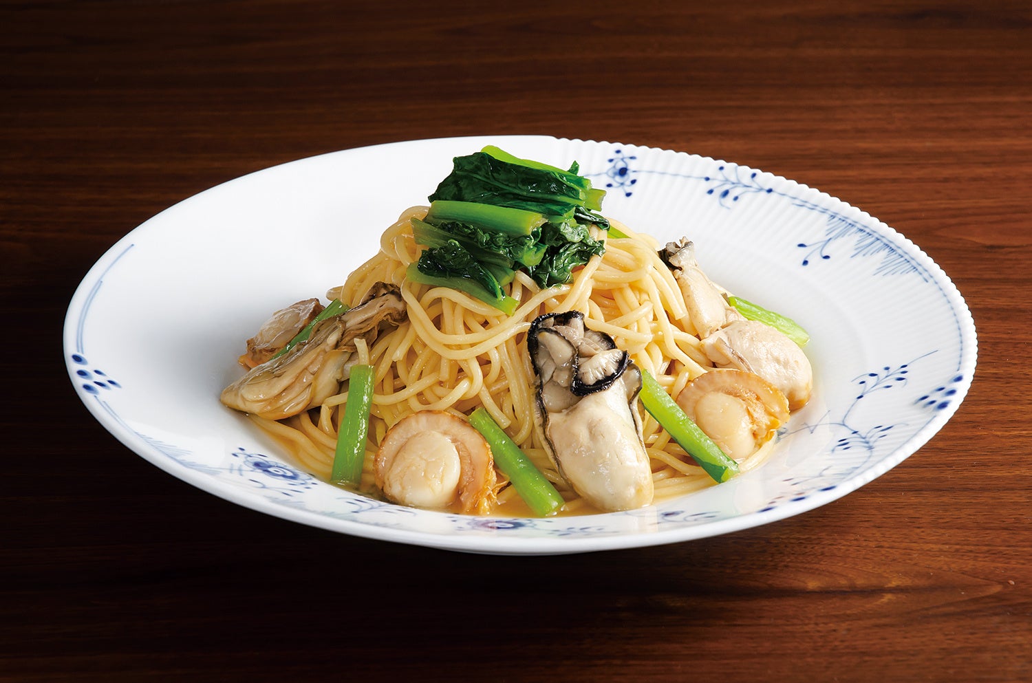 ぷりっぷりの広島県産の大粒牡蠣、身がぎゅっと締まった肉厚帆立の美味しさが口いっぱいに広がります。