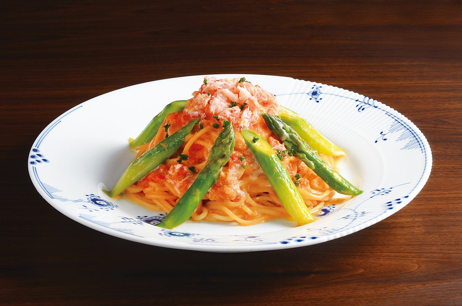 ◆紅ずわい蟹とアスパラのトマトクリーム
