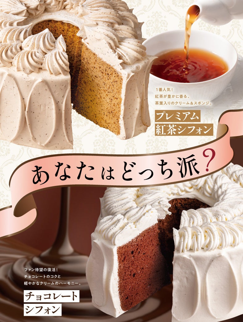 しっとり口どけのよいスポンジと軽やかなクリームのハーモニーは、手が止まらなくなる美味しさです。不動の人気を誇る「プレミアム紅茶シフォン」と、皆さんはどちらがお好きですか。