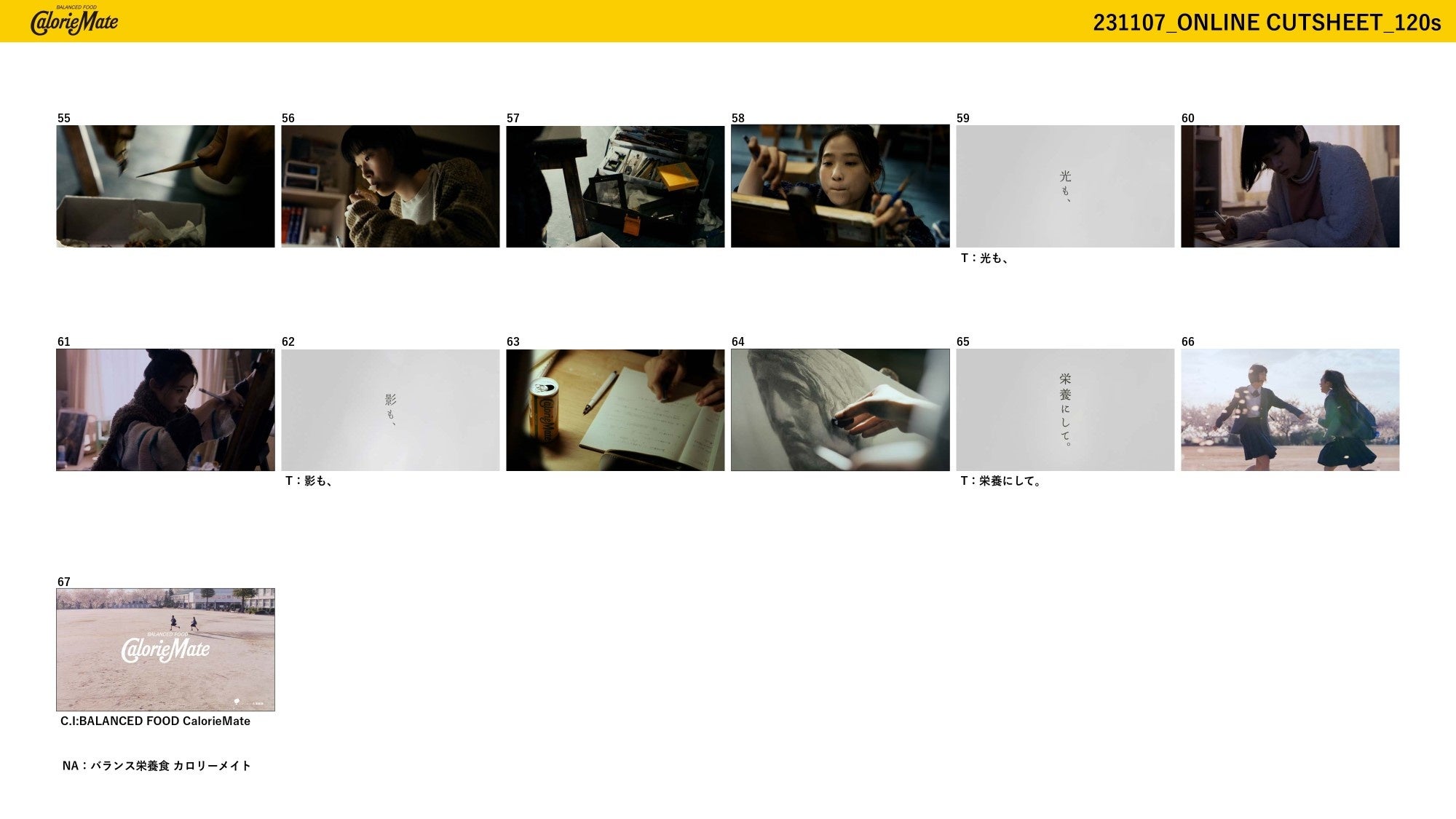 カロリーメイトCM 『光も影も』篇 120秒 :(URL https://youtu.be/AuxXufx5kKQ)